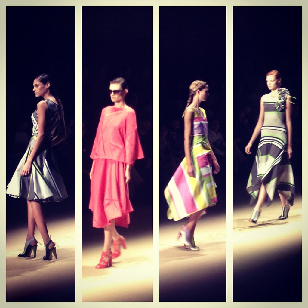 Brera, Piccolo Teatro di Milano sfila Laura Biagiotti! Invasione di eleganza e di colori accesi e dopo un minuto di sfilata io ero già con le lacrime agli occhi. Sono rimasta incantata, mi stacco dalla realtà e per pochi minuto mi lascio trasportare dalle emozioni di questo film fatto di geometrie, linee, forme colorate e leggere ma soprattutto femminili. Una femminilità che non ha età e che vive da sempre attraverso l’alta sartorialità di questa grande artista italiana che con sua figlia Lavinia detta la moda italiana nel mondo.