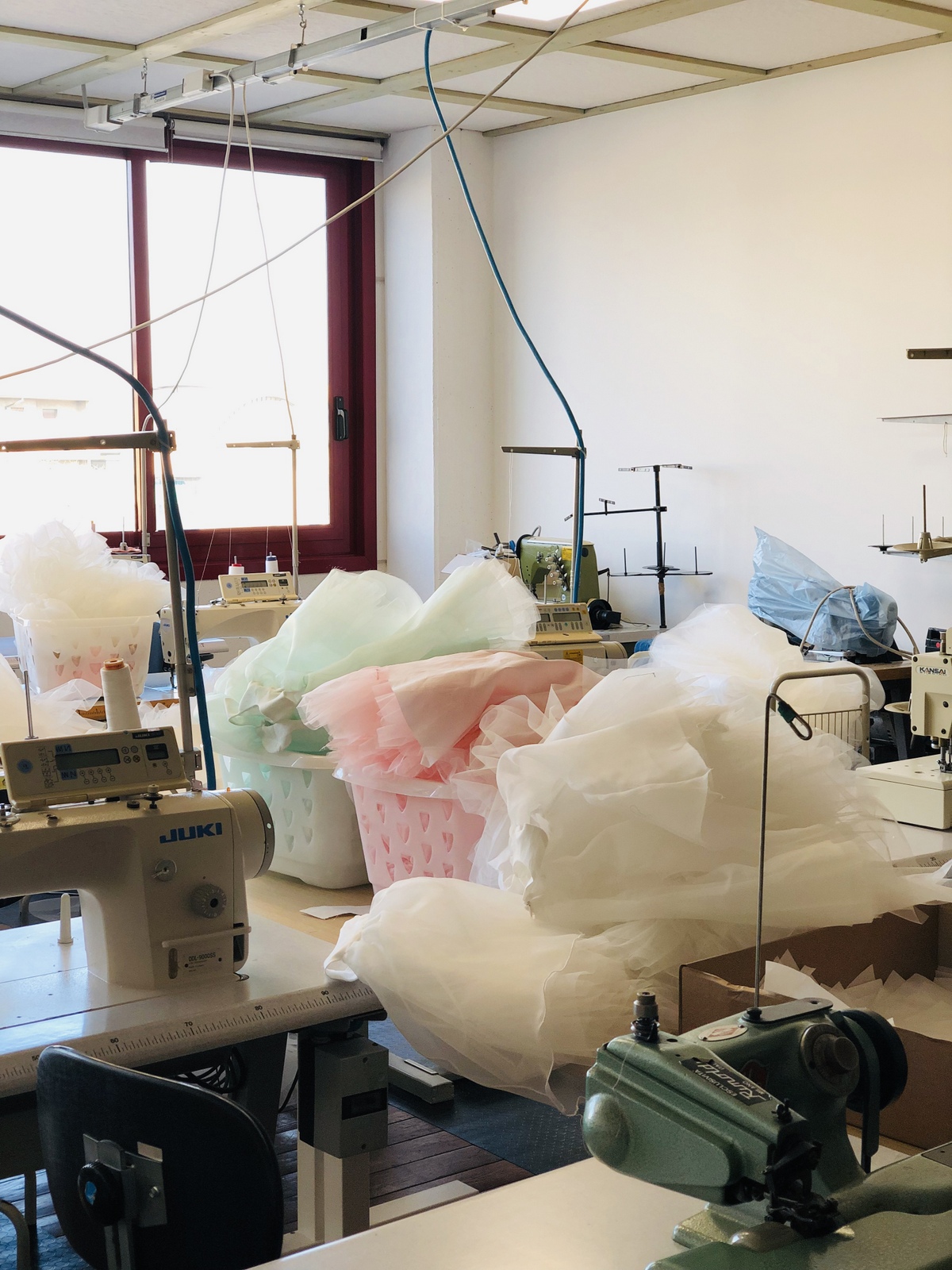 The dresses I could see are really unique, romantic, sophisticated, but above all refined in the most minute details, so many details that make these timeless products precious. The materials, very valuable, are all Italian, and so are the tailors. They’ve just moved the manufacturing department to another location, that sounds like an out-of-the-world atelier space.