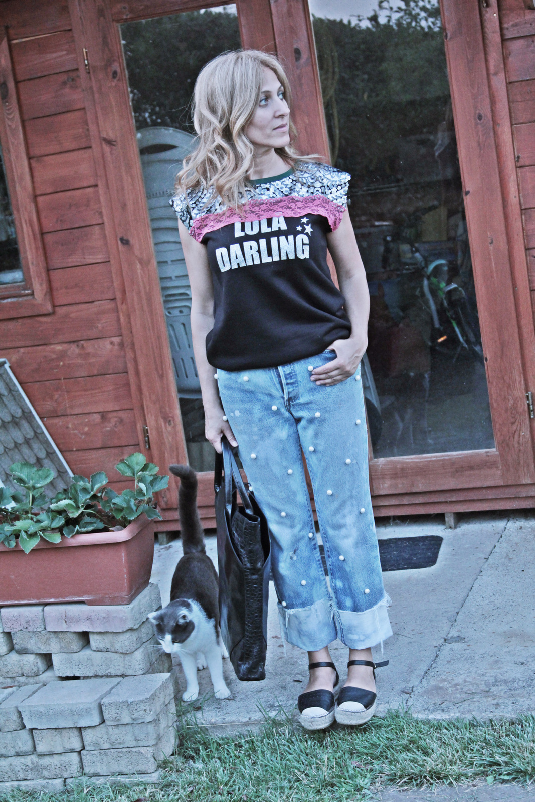 Mi piacciono i tuoi look perchè non mancano di audacia e poi oggi mi sono innamorata di questi jeans con le perle! Baci Elisabetta