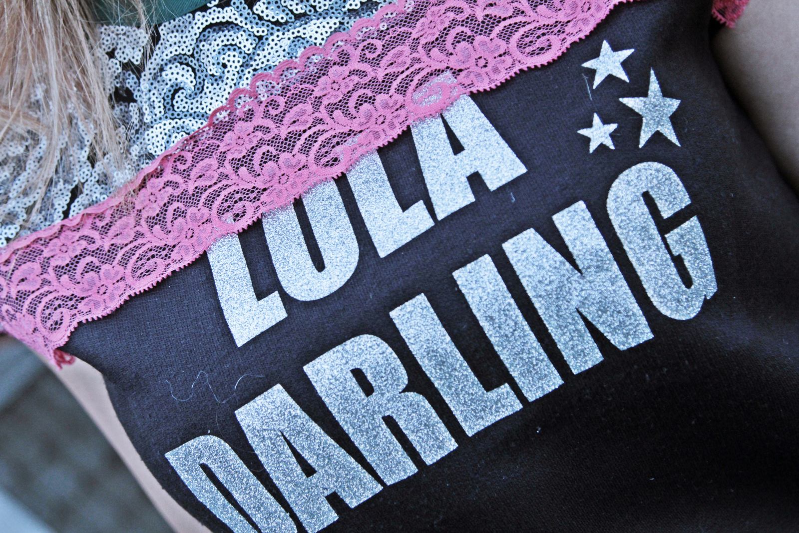 Pizzo, paiellettes, stelle, buon gusto e un po’ di audacia. Una felpa che diventa chic e invidiabile se abbinata sotto un denim vintage della serie Levi’s 501 tornati in vita “alta”.