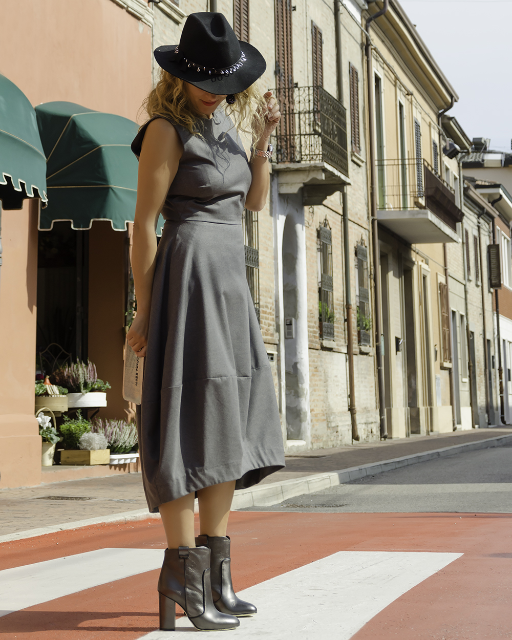 Io ho scelto per questo post lo stivaletto con il tacco largo alla caviglia. Va benissimo con jeans skinny, gonne corte, ma nel mio caso ho voluto abbinarlo ad un abito importante, elegante e glamour di Liviana Conti. Un abito che considero evergreen che puoi indossare sempre, un abito che ha la forza e la poesia della continuità, è bello, colto e intrigante e per certi versi mi assomiglia nel mio inconscio. Lo stivaletto lo rende grintoso e contribuisce con il suo tacco comodo a rendere il corpo femminile davvero sensuale.
