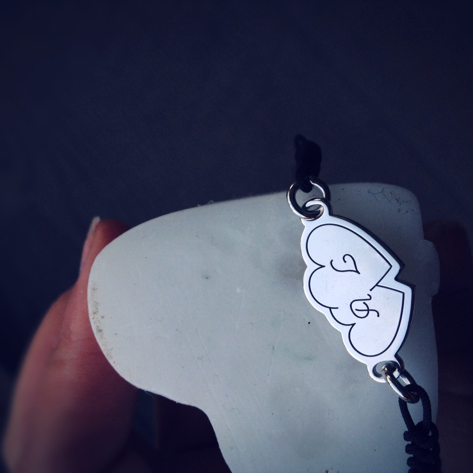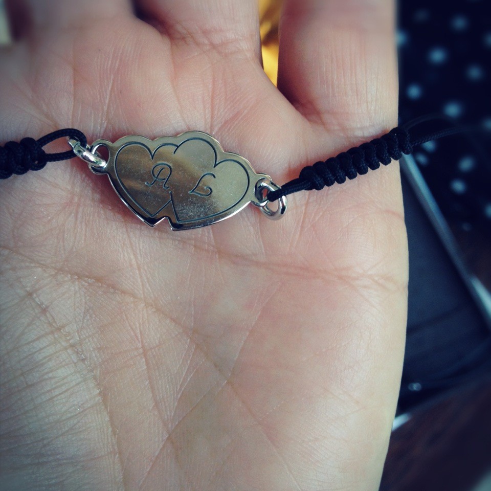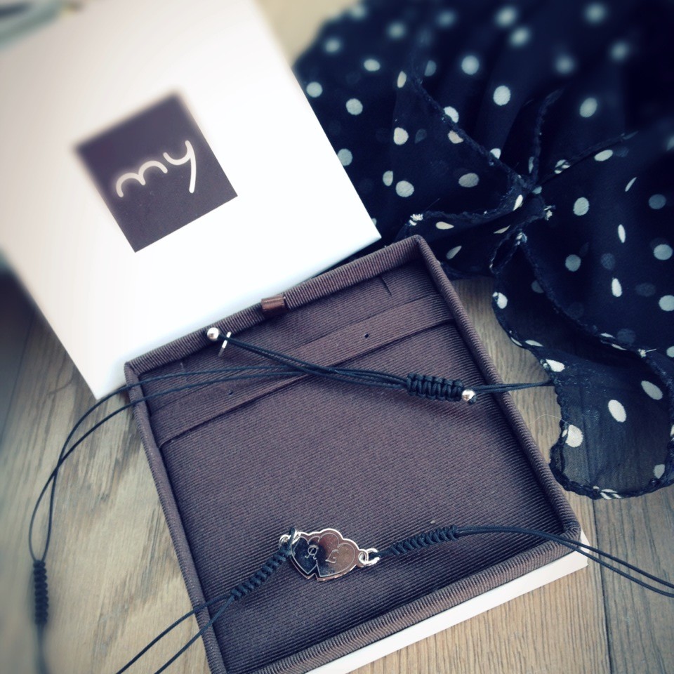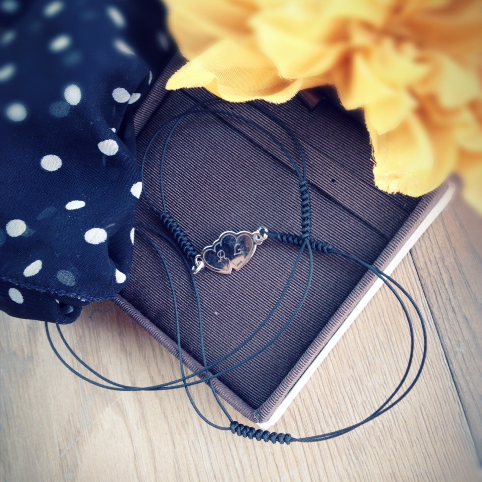 Ho pensato di creare un gioiello che mi parlasse di lui sempre. La sua iniziale e la mia su un pendente a forma di cuori su un cordino nero. My Jewels l’amore prende vita.