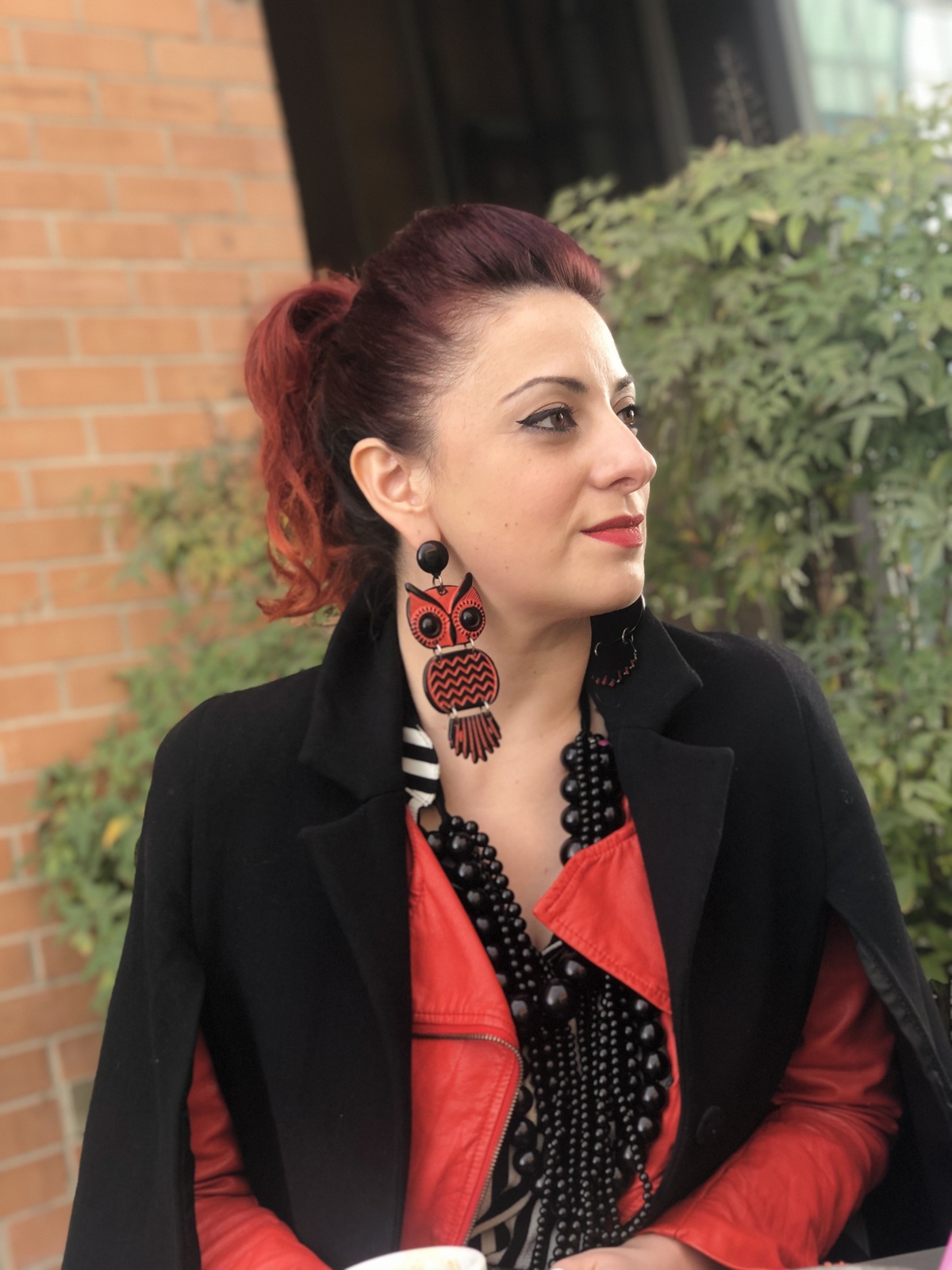 L’ultima volta che sono stata da lei prima che lo spazio delle meraviglie chiudesse per cessata attività, proprio in Dicembre, ho indossato, nel negozio di CLO a Modena, cappotto rosso , ormai iconico e un cappello di Marta Jane Alesiani.