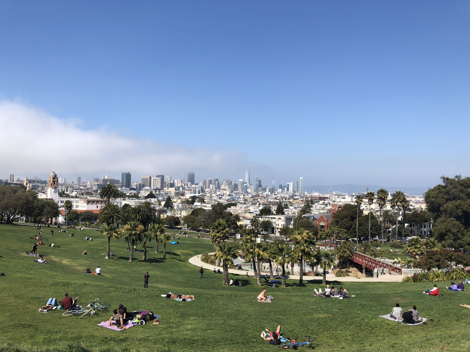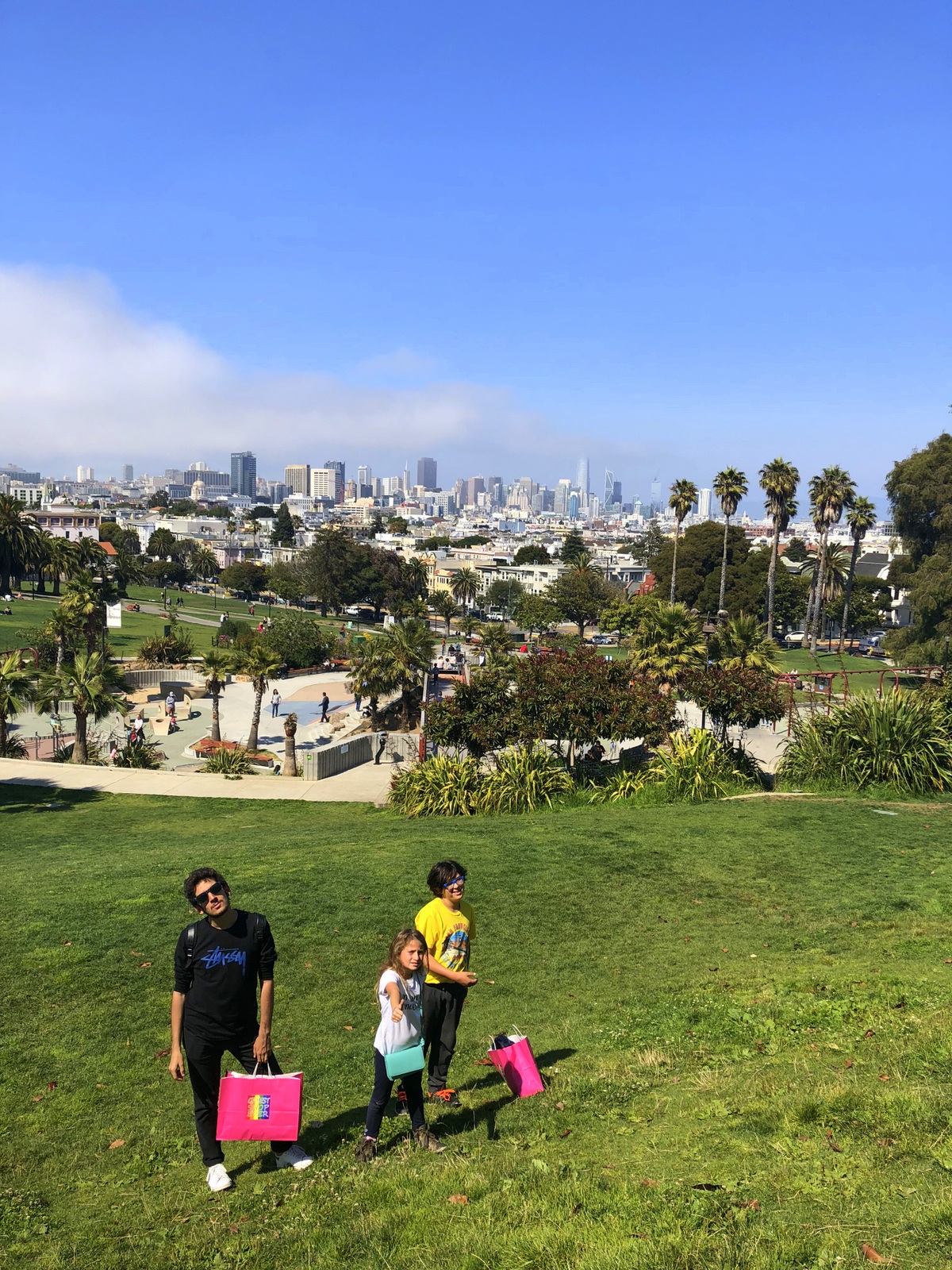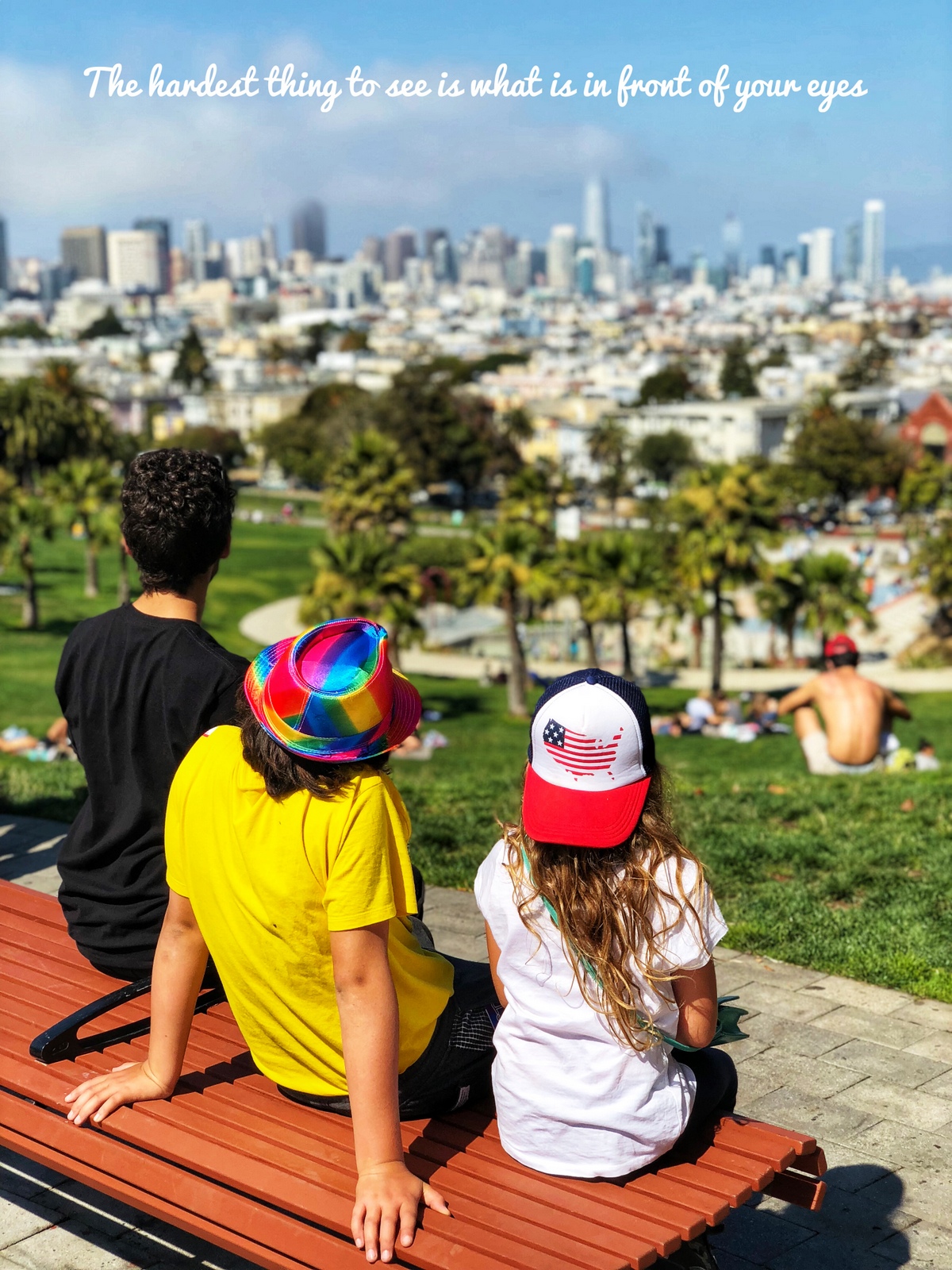 In queste immagini vi presento Mission Dolores Park. Tra i parchi cittadini più grandi, belli e luminosi di tutta la città. Situato tra Mission e Noe Valley domina tutta la città. E’ meravigliosa vedere un pezzo di SF completamente illuminato dal sole e dal cielo azzurro. E’ il tipico posto americano dove puoi osservare la gente comune che fa il pic nic o prende il sole, ascolta buona musica! Please take with me in Missione Dolores Park! Follow my life, follow my dream!