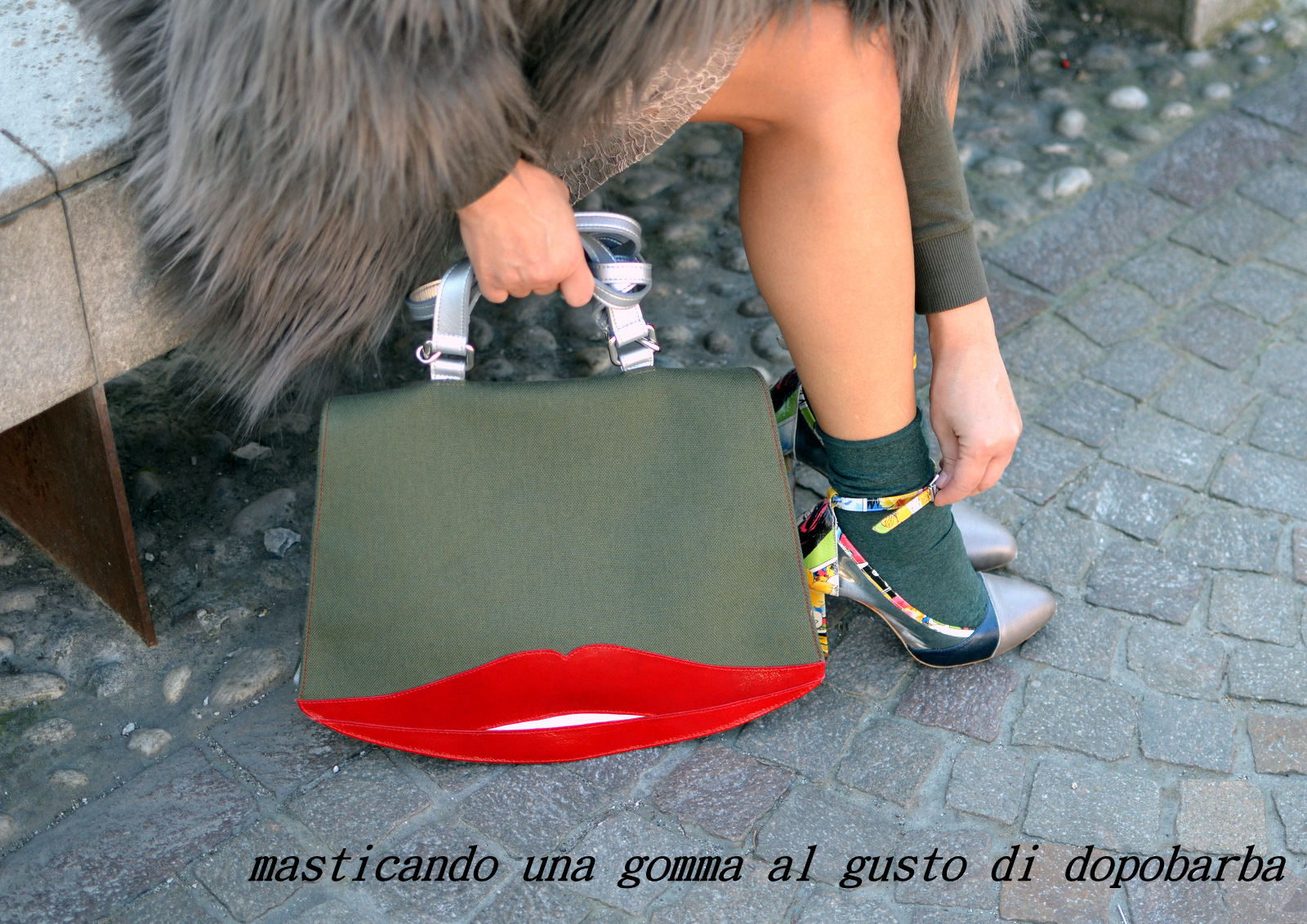 Nel frattempo potete sempre guardare e criticare il mio look. Un mix di capi differenti e sofisticati per un risultato perfetto. Giocando con i colori della coppola, la trasparenza di un abito in pizzo, la morbidezza di una felpa, la fluidità di un giaccone in ecofur. Per un mood sporty, chic, romantic, mescolato al potere di accessori originali e divertenti come i tacchi fumetto, la kiss bag. Che lo stile sia con voi. Amen.