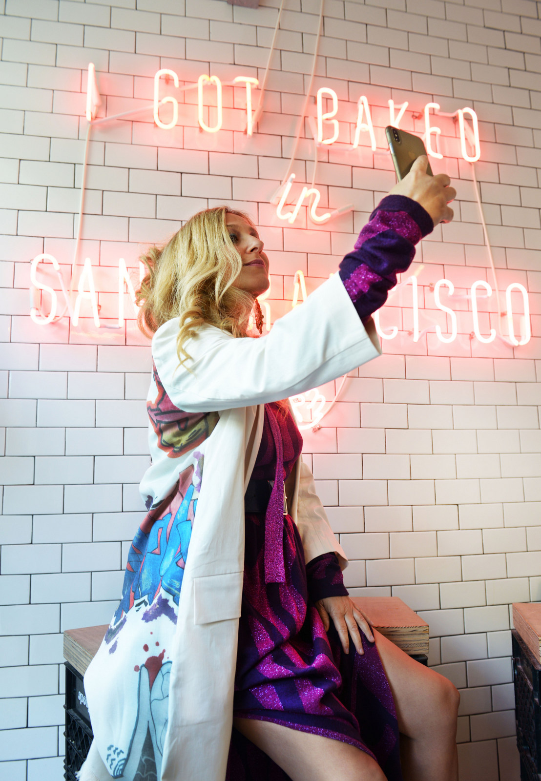 A white trench by Della Paolini, standing out vehemently on the dress with its graffiti on the back of the item, realized live by artist Peyote. A look that’s drawn the attention of many women who, intrigued, were asking me for information. The Texan (boots), with their grit, complete the (outfit) look. What can I say? We are in the United States, which better footwear could I choose to debut on the streets of San Francisco, with a photo shooting realized by the excellent Claudia Anzalone?