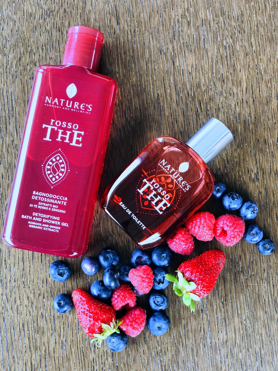 Anche quest’anno Nature’s vi regala profumi esclusivi racchiusi all’interno di linee naturali che io sto già provando. Sono partita subito con il rosso rubino della linea Detossinante al The Rosso e Zenzero, vivace ed originale. Formulato con detergenti vegetali che oltre a rispettare l’equilibrio della nostra pelle, contribuiscono ad infondere una profonda azione detossinante grazie allo Zenzero e una efficace azione antiossidante grazie al Tè rosso. La texture è cremosa, la colorazione trasparente. Tonifica, illumina e profuma, non solo il tuo corpo, ma tutto l’ambiente di purezza e di vitalità.