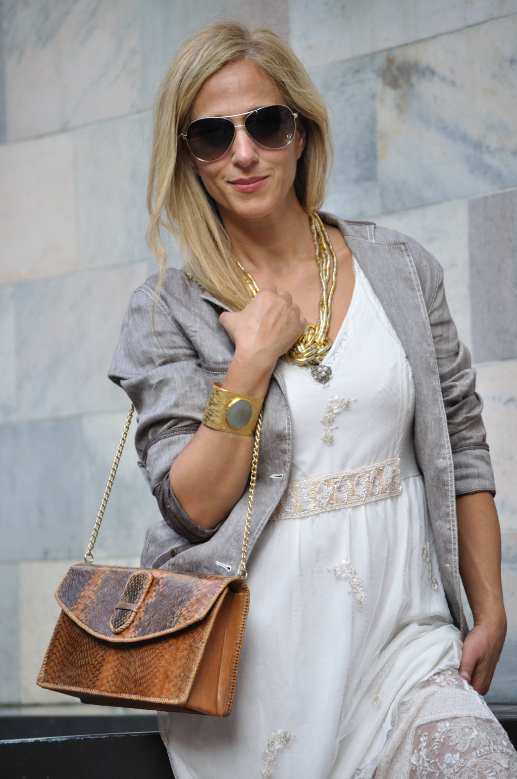 Quanto mi piace la giacca che indossi in questo look, si sposa benissimo col vestito sia come tinta che come modello!