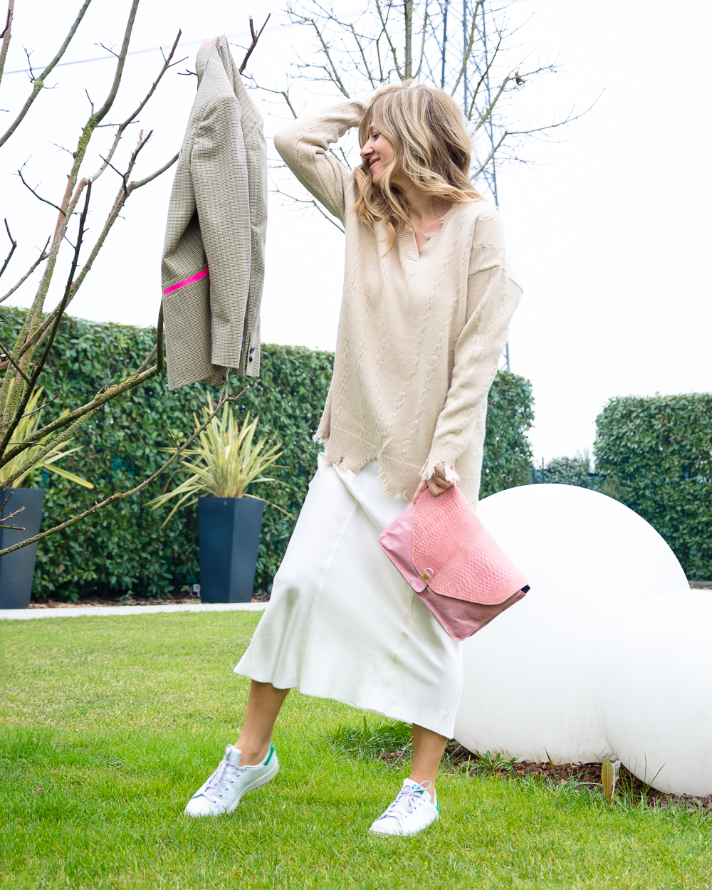 Un maglione tra il grunge e il femminile. Un pezzo davvero cool che stavo cercando già da qualche tempo. Morbido, da abbinare al jeans, allo short oppure come ho fatto io sopra una sottoveste color panna. Questo maglione ha una particolarità, è strappato. Gli orli non esistono. Sembra presto dal guardaroba di mia nonna sdrucito e rammendato. Lo amo perché pare vissuto invece è mio! Felice di avere conosciuto questo splendido posto di cui presto vi mostrerò le prossime collezioni primaverili.