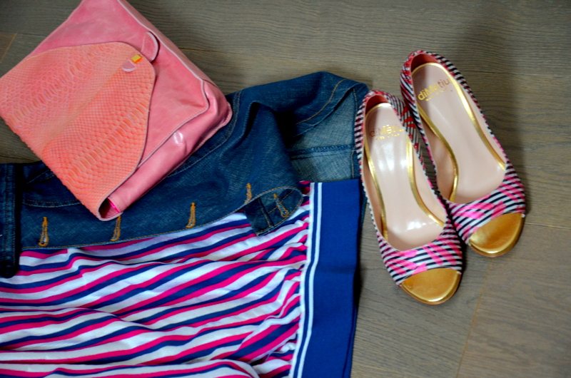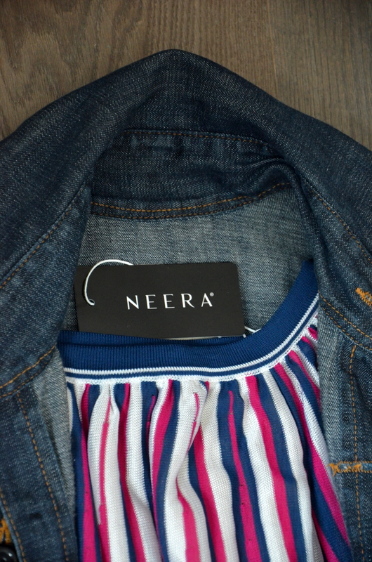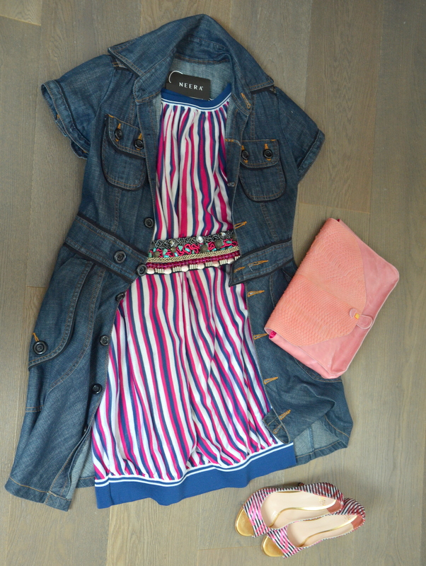 Dall’eleganza e dalla semplicità di Neera nasce questo mini abito in maglia a righe che ho voluto accompagnare con una serie di pezzi particolari quali un mini dress in denim che aperto davanti può tranquillamente essere scambiato per un cappottino estivo dalle maniche corte…infatti è quello che ha pensato Cinzia nel nostro pomeriggio trascorso a rovistare nei miei tre piani di guardaroba.