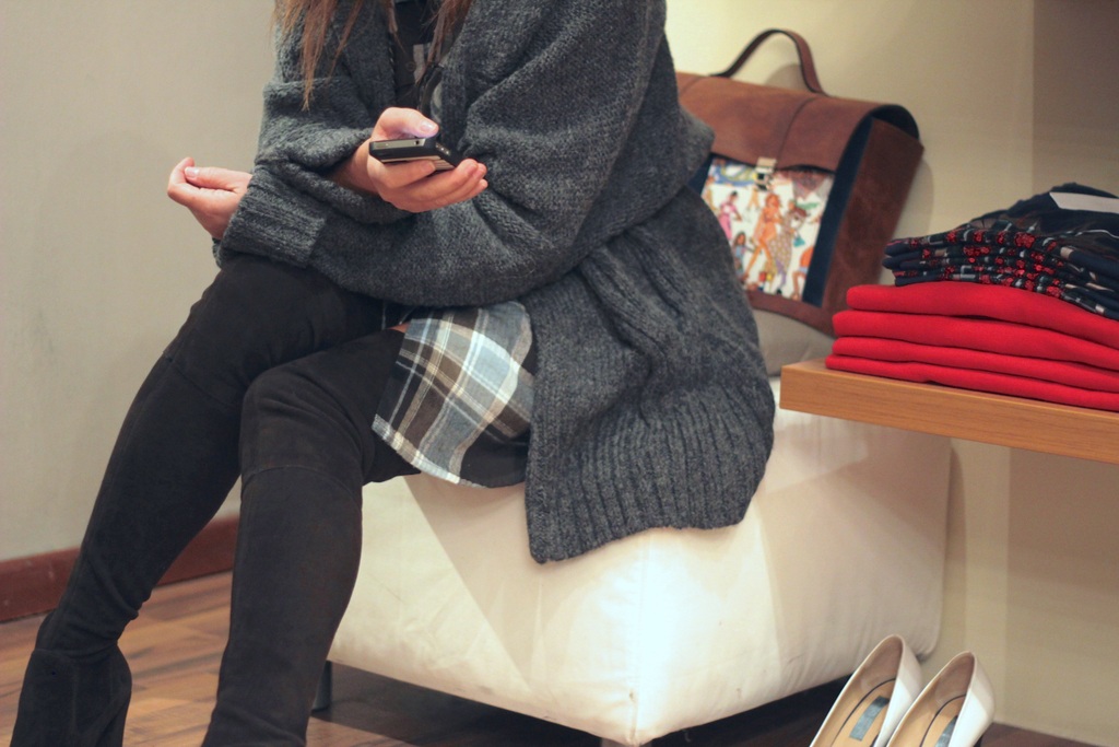 Un Outlet che permette capi di qualità a prezzi molto bassi. Io mi sono strainnamorata di una camicia a quadri di Naf Naf, con maniche lunghe e polsini abbottonati, ma ahimé non c’era la mia taglia. Quindi ho giocato sulle taglie over e l’ho trasformata in un mini abito scamiciato a quadri. Poi ho trovato un maxi cardigan in lana grigio, di quelli evergreen che non possono mancare in ogni buon guardaroba che conti e l’ho abbinato sopra, strizzato in vita con la sua cinturina marrone. Il cardigan è abbinabile con qualsiasi tipo di abbigliamento per un tocco di stile e di tepore in questo Dicembre un po’ rigido. Il tutto scontato al 70%.