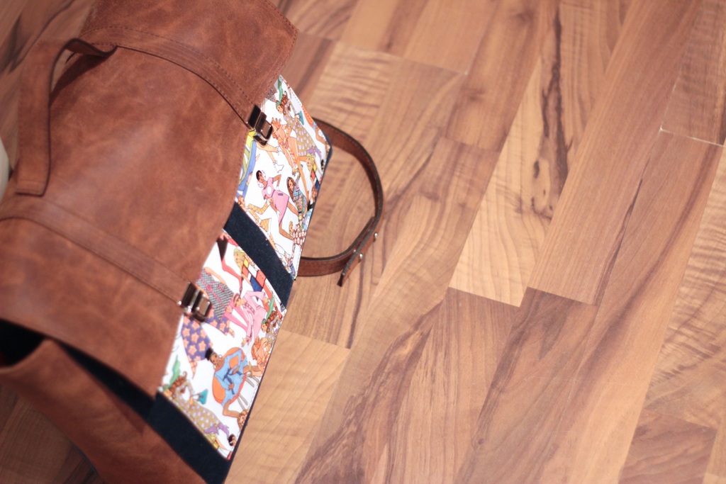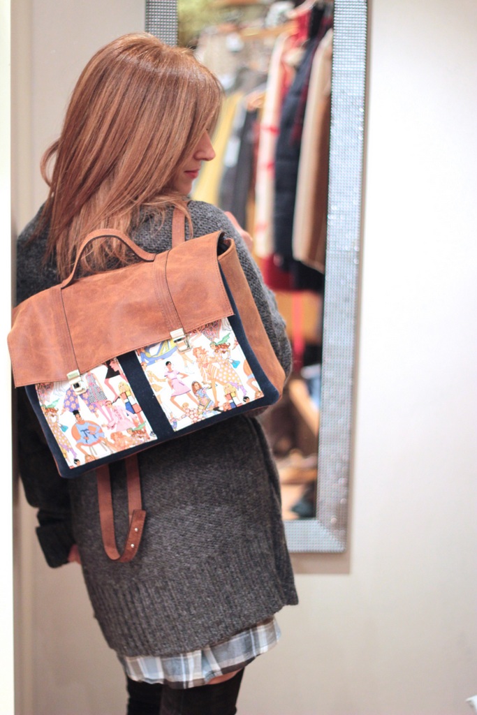 Per finire ho avvolto piedi e gambe in un paio di morbide cuissarde in camoscio testa di moro, rigorosamente senza calze. Si, lo ammetto, mi sono presa un raffreddore … poiché non avevo calcolato che fuori la temperatura era piuttosta fredda e gli anticorpi, con l’età che avanza, scemano. La cartella di Twobet, con i suoi fumetti disegnati sulle tasche, ha disincantato l’atmosfera dell’ennesimo tartan look. Un comodo contenitore di segreti, di documenti, di apparecchiature digitali e di appunti di viaggio, quelli del mio prossimo post. Restate incollati tante sorprese mi aspettano e di cui vi parlerò.