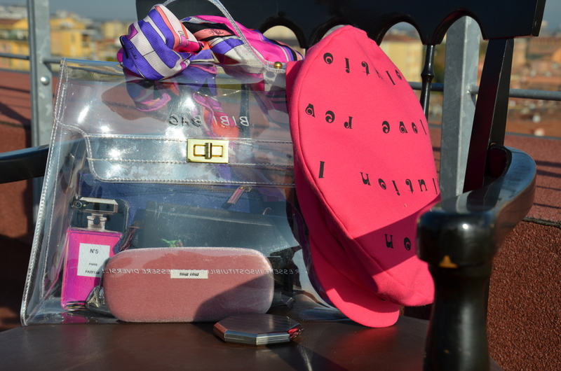davvero particolare questo look! anche se non amo molto le borse trasparenti