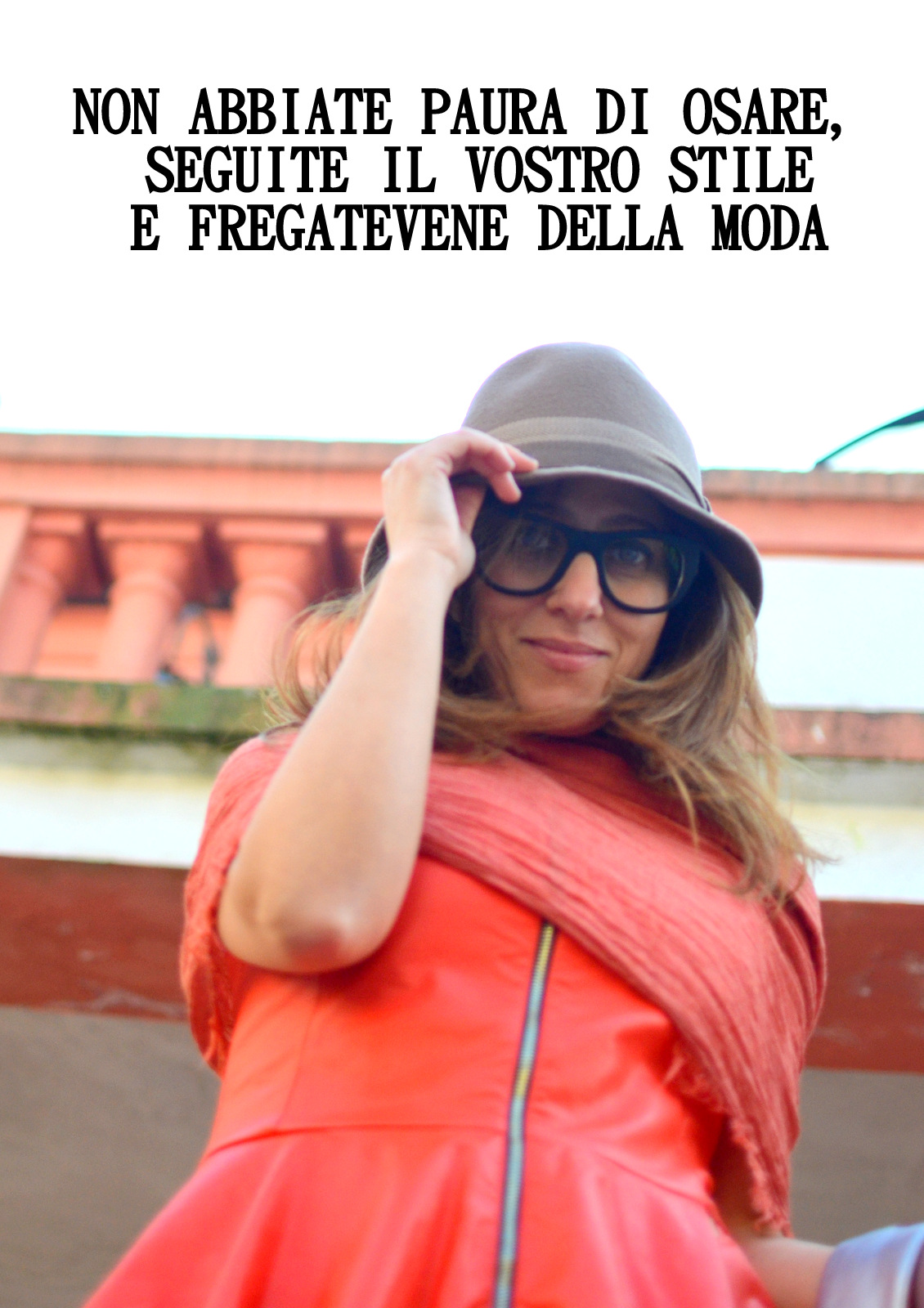 Orange is one of my favorite colors so that top I like so much! Very fun hat and shoes and your legs are gorgeous! Very lovely lady!! Happy Monday 🙂 xoxo