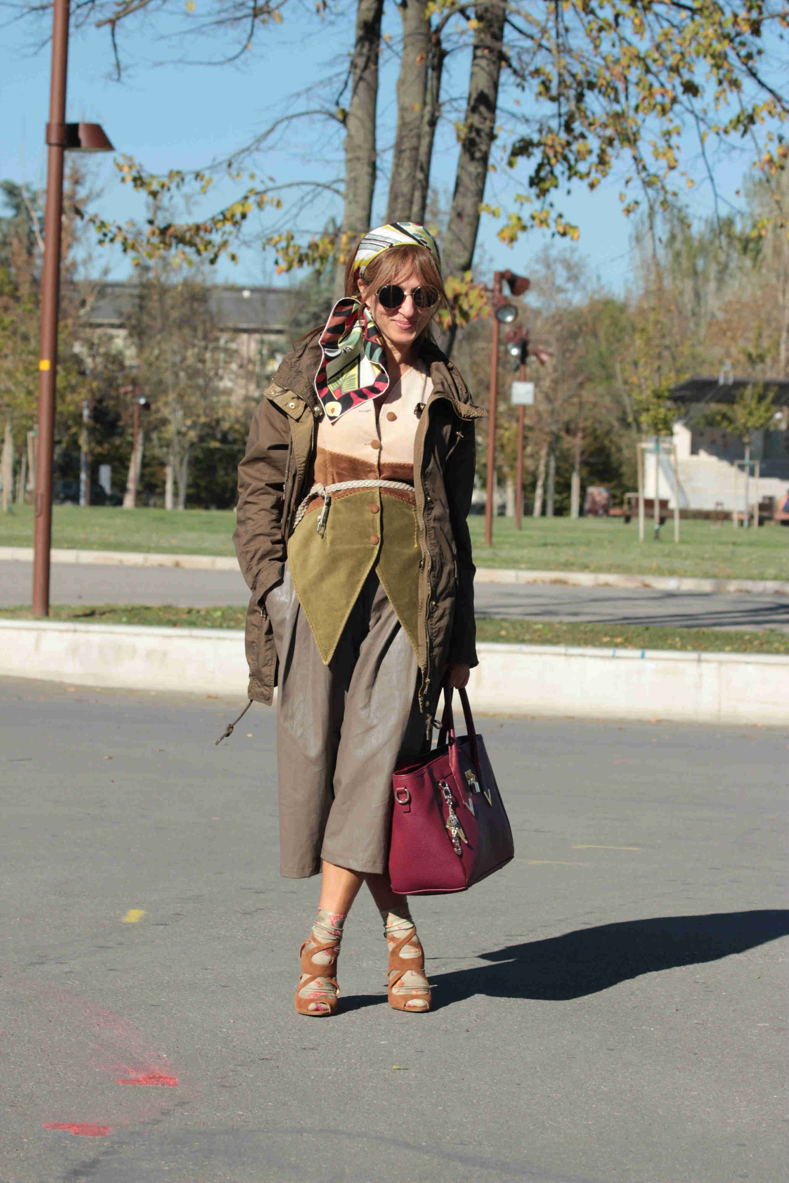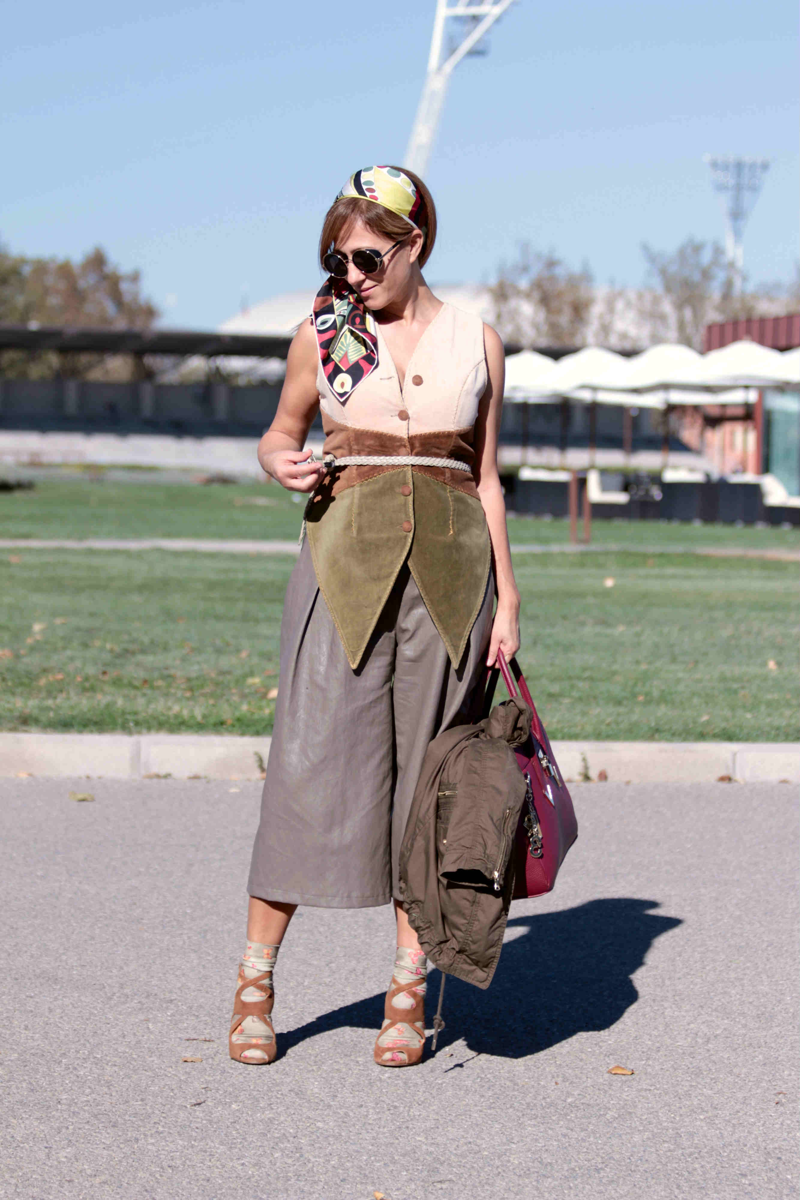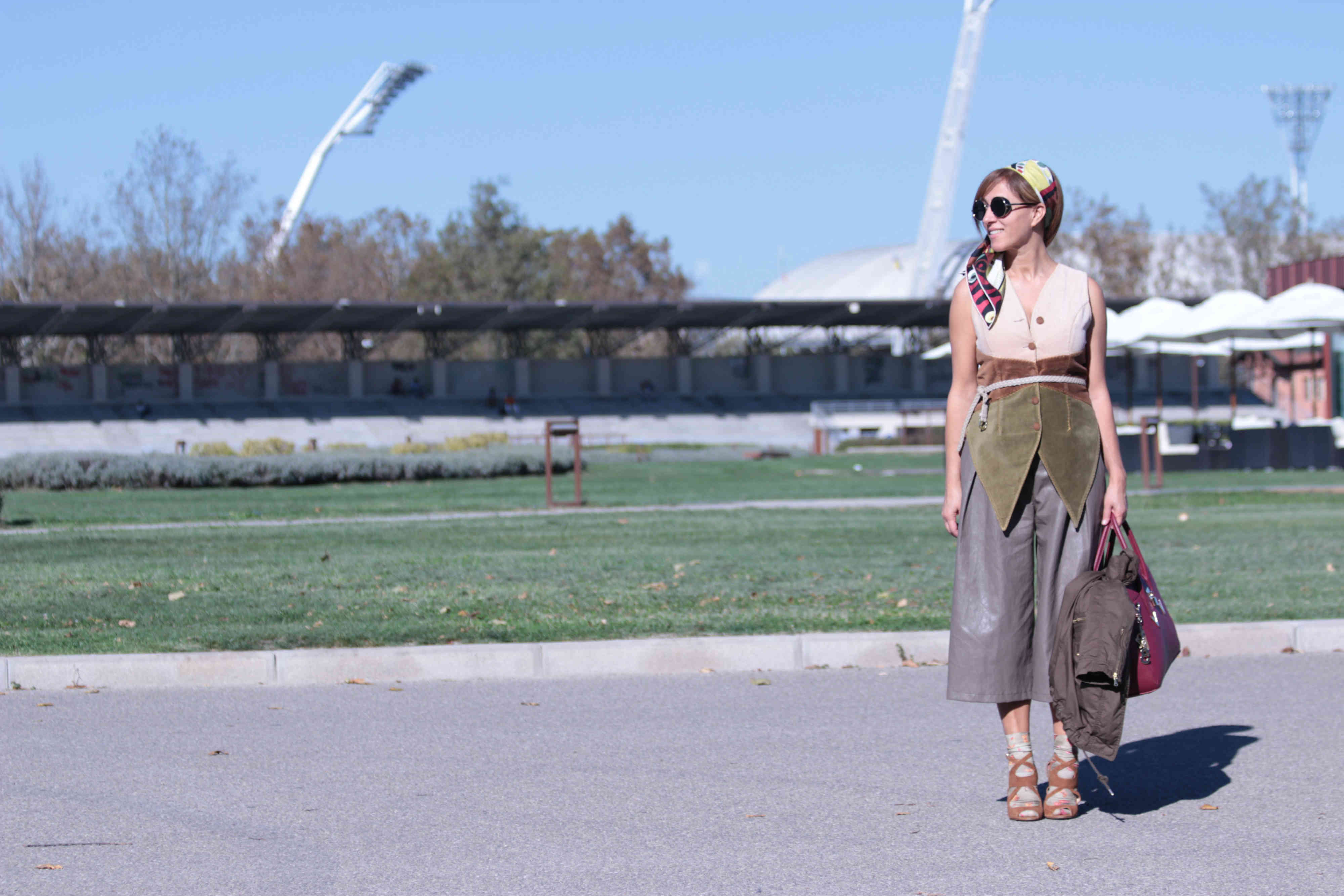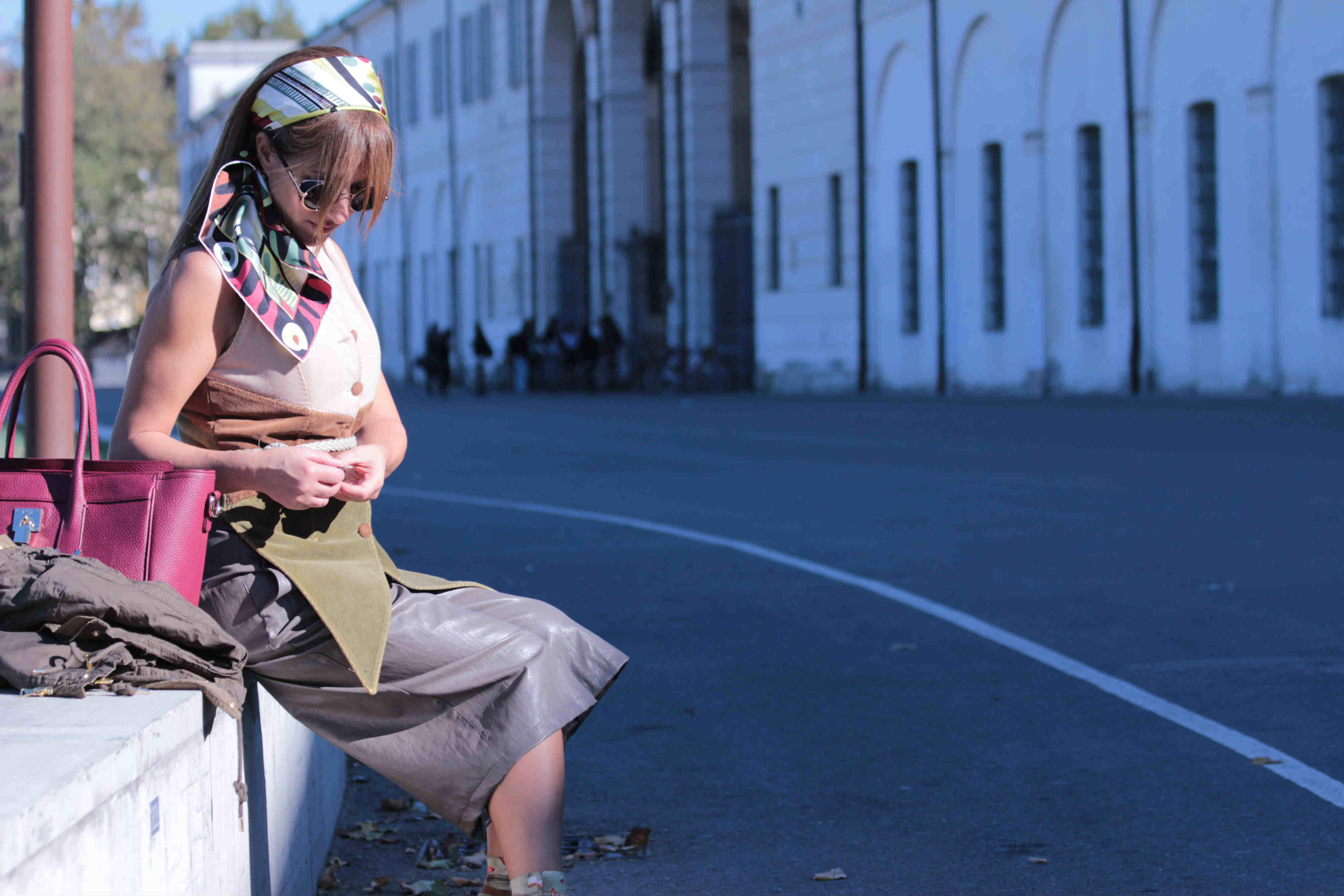 Ricordare quegli anni per me è sempre un’emozione intensa e quindi non potevo non comprare questo esemplare di gonna pantalone in ecopelle. Tornata in auge già dalla scorsa primavera. Comoda, pratica, simpatica e giocosa l’ho abbinata al mio gilet vintage, ad un paio di sandali con calzino e per finire ad uno dei miei foulard di Pucci. Per godere di questa luce meravigliosa che accende le giornate modenesi di novembre un po’ fredde ma chiare, limpide, serene e colorate. Buona Giornata a tutti!