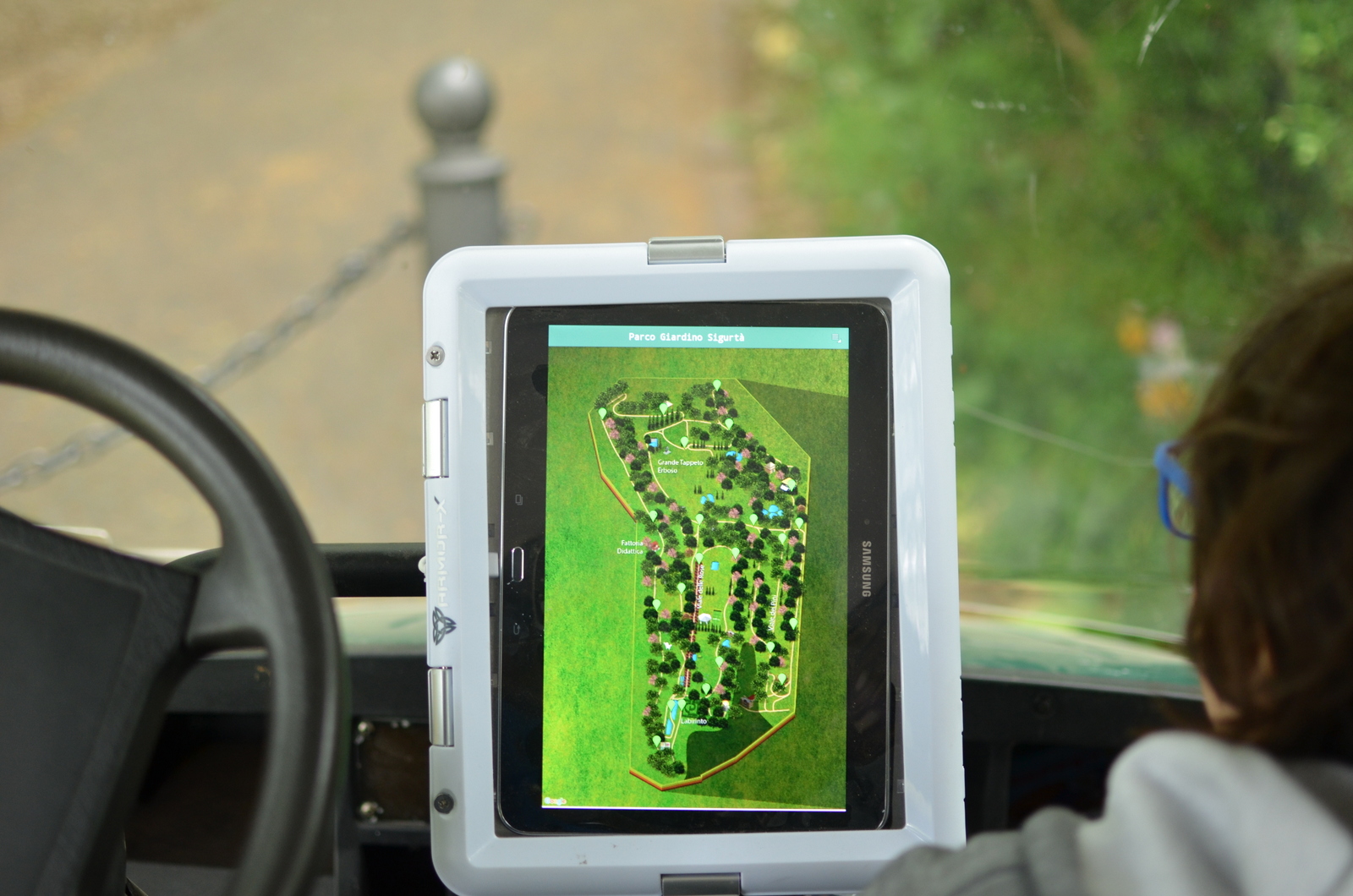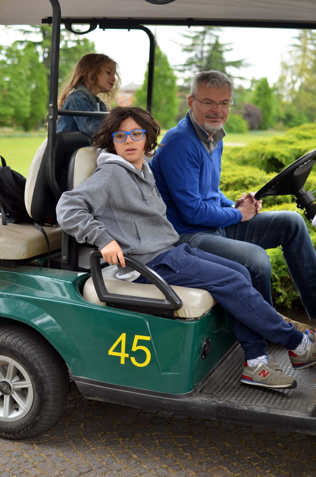 A piedi, in trenino, in bicicletta e se non ce l’ha la puoi noleggiare. Oppure con il car che il papi usa quando gioca a golf infatti noi abbiamo usato il car.
