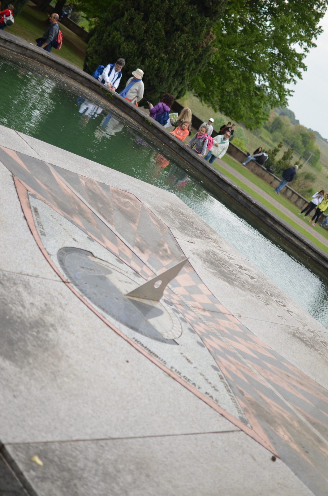 È una specie di orologio che è stata costruito dietro la statua del signor Sigurtà e misura il tempo in base alla posizione del sole.