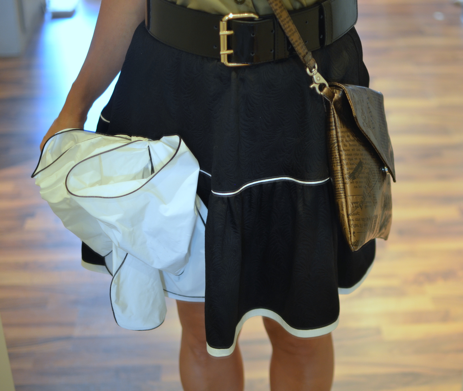 Due marchi che amo. Una gonna, geniale, rivoluzionaria (già vista QUI), per sentirsi nuove, chic e stilé. Un enorme fiocco bianco cattura l’attenzione mentre si intreccia in un contrasto decisamente forte con la camicia militare da uomo (gia vista QUI e QUI). Un dualismo oltre che cromatico anche di stile, dal bon ton romantico e chic ad una roba fatta per gli uomini.