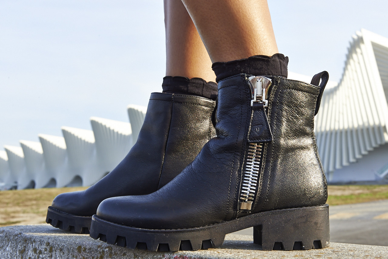 Tra i capisaldi del nostro guardaroba io ci metto i bikers. La cosa geniale è che sono scarpe che resistono nel tempo e che ci aiutano a costruire le basi per diventare anche più creative. Nel mio look di oggi una gonna vintage con fiori di velluto ricamati, una cintura strizzata in vita su una blusa movimentata, un po’ di accessori e una borsa in ecopelliccia strepitosa. Ho scelto una scarpa rifinita molto bene, in pelle liscia e leggera e si adatta al piede con estrema naturalezza, senza perderne la forma. La cerniera laterale scorre senza intoppi. La punta è giusta e ben sagomata (non troppa quadrata, non troppo lunga, non troppo tonda). Direi che queste scarpe me le gusterò moltissimo ottima alternativa ai tacchi per restare cool ogni giorno.