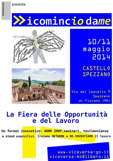 “Ricomincio da me” è la Fiera del lavoro rivolta a persone in cerca di un’ occupazione, aspiranti imprenditori o per chi vuole esplorare percorsi occupazionali alternativi.Questa manifestazione è organizzata da un’associazione femminile Viceversa, un laboratorio culturale, no profit, che promuove il legame tra arte, cultura e lavoro valorizzando la persona e il suo benessere fisico e spirituale al centro di tutto.