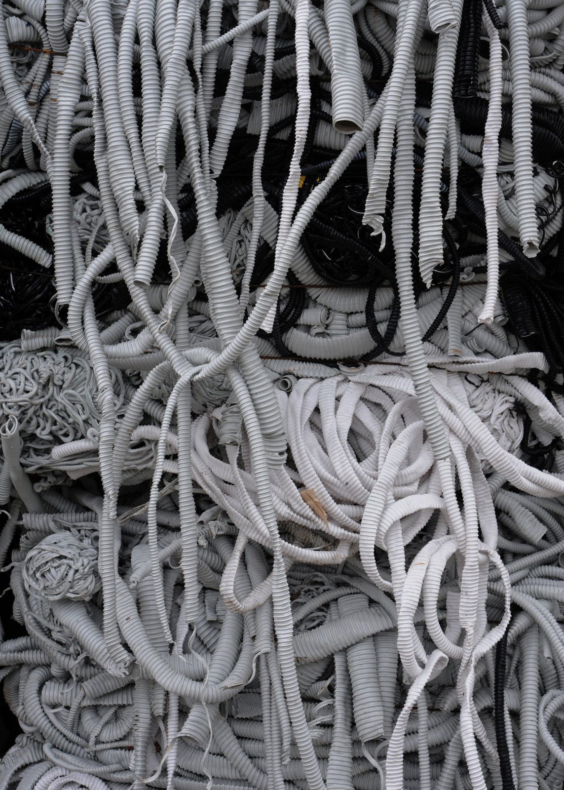 Cosa ha fatto questo artista? Se n’è andato in giro per discariche e giacimenti di immondizia alla ricerca di qualcosa. Magari senza sapere esattamente cosa, ha scoperto che la spazzatura può essere bella, affascinante oltre che misteriosa. Le foto che vedete sono dettagli di quel mondo che raccoglie quello che non ci serve più, scarti del nostro passato e della nostra vita che in un flash back adesso all’improvviso in mezzo a questi colori, a questi effetti che sembrano speciali, invece sono veri, si sono ritrasformati per darci un messaggio. Non siamo più la società dei consumi ma siamo la società dell’ambiente che prende coscienza di sé e del fatto che la spazzatura può e deve essere una nuova ricchezza poiché inserita in un percorso di trasformazione, esattamente come la nuova materia prima.