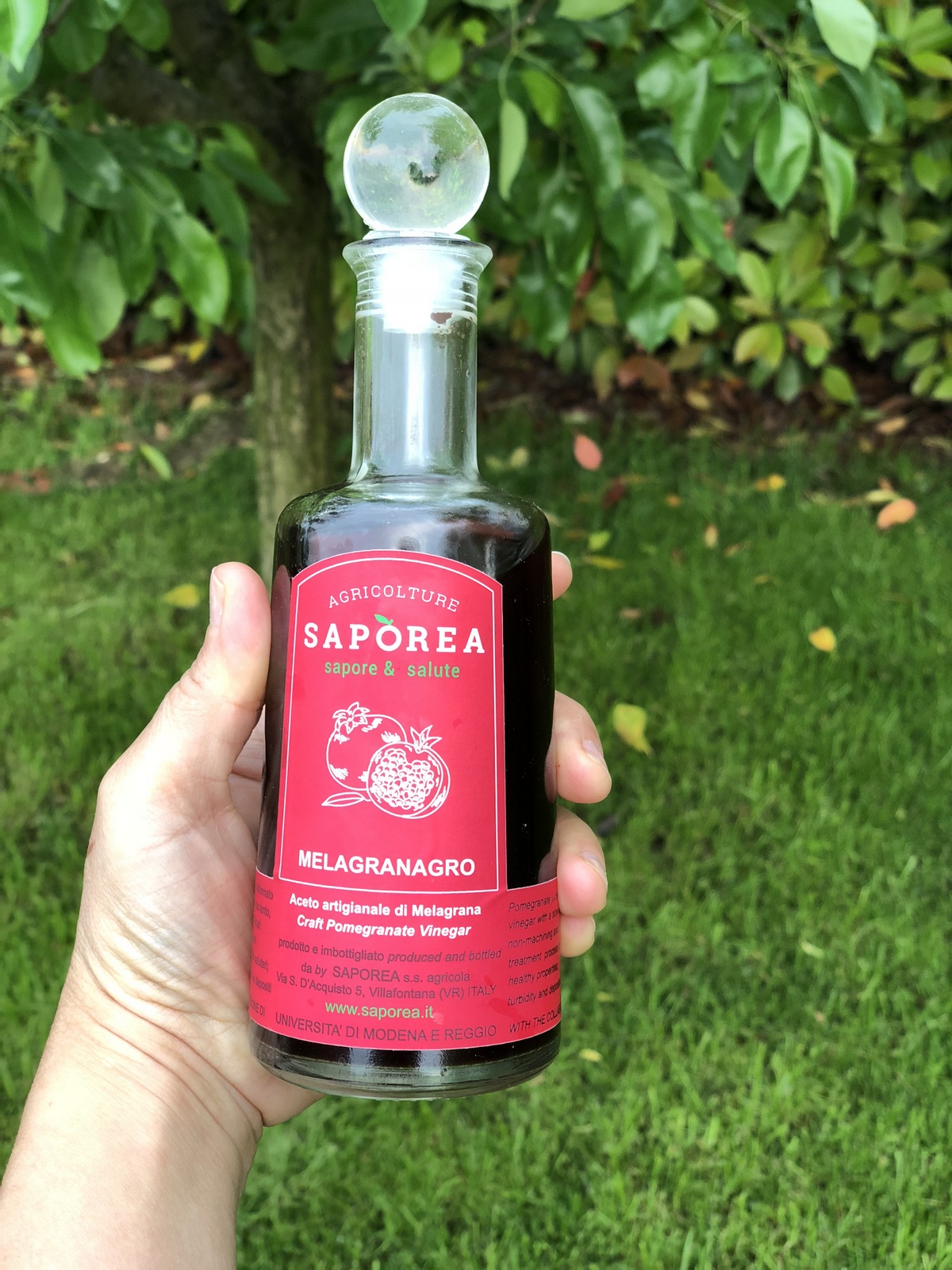 Il sapore è unico, leggermente frizzante e lascia in bocca il sapore del cibo senza alterazioni aromatiche. Ho provato quello di melograna sulla carne e vi assicuro che il mio piatto sembra più leggero. Io poi sono molto curiosa e vi dirò che lo uso ormai su tutto! Sul pesce, sulle insalate e nelle macedonia di frutta, si l’ho provato anche sulle fragole!
