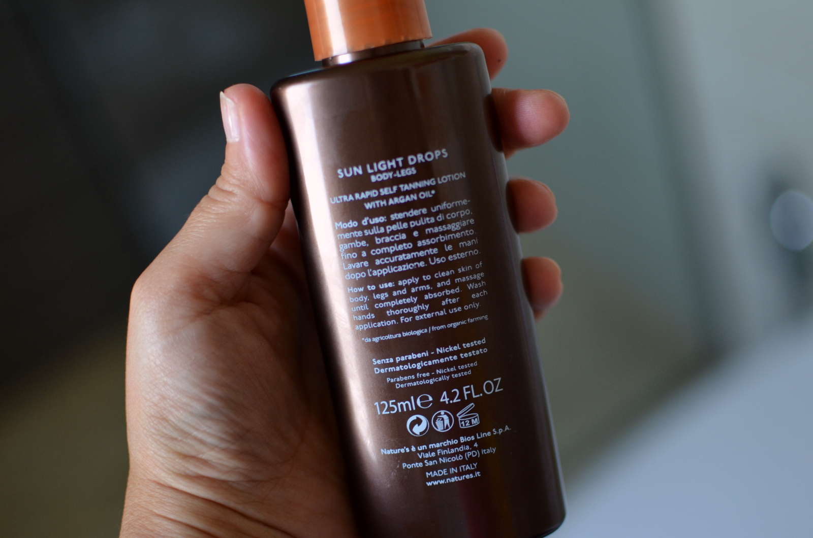 Dopo avere scoperto la linea super completa dei I Solari di Nature’s, solari specifici per corpo e capelli, con formule frutto di tecnologie di ultima generazione e filtri di avanguardia, ho notato con grande meraviglia un prodotto molto particolare di cui ignoravo l’esistenza, si chiama Gocce di Sole Fluido Autoabbronzante Corpo e Gambe. Della serie: