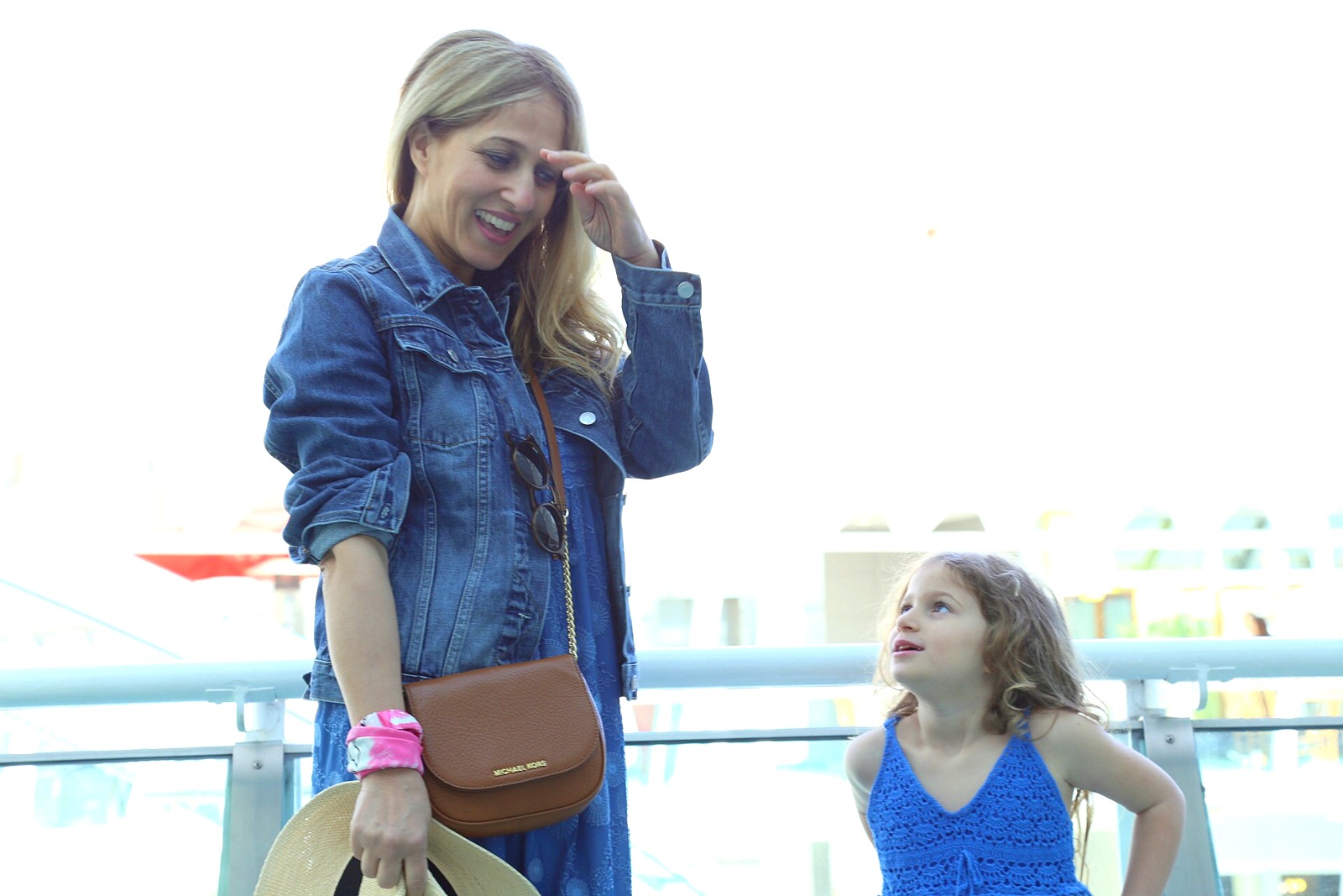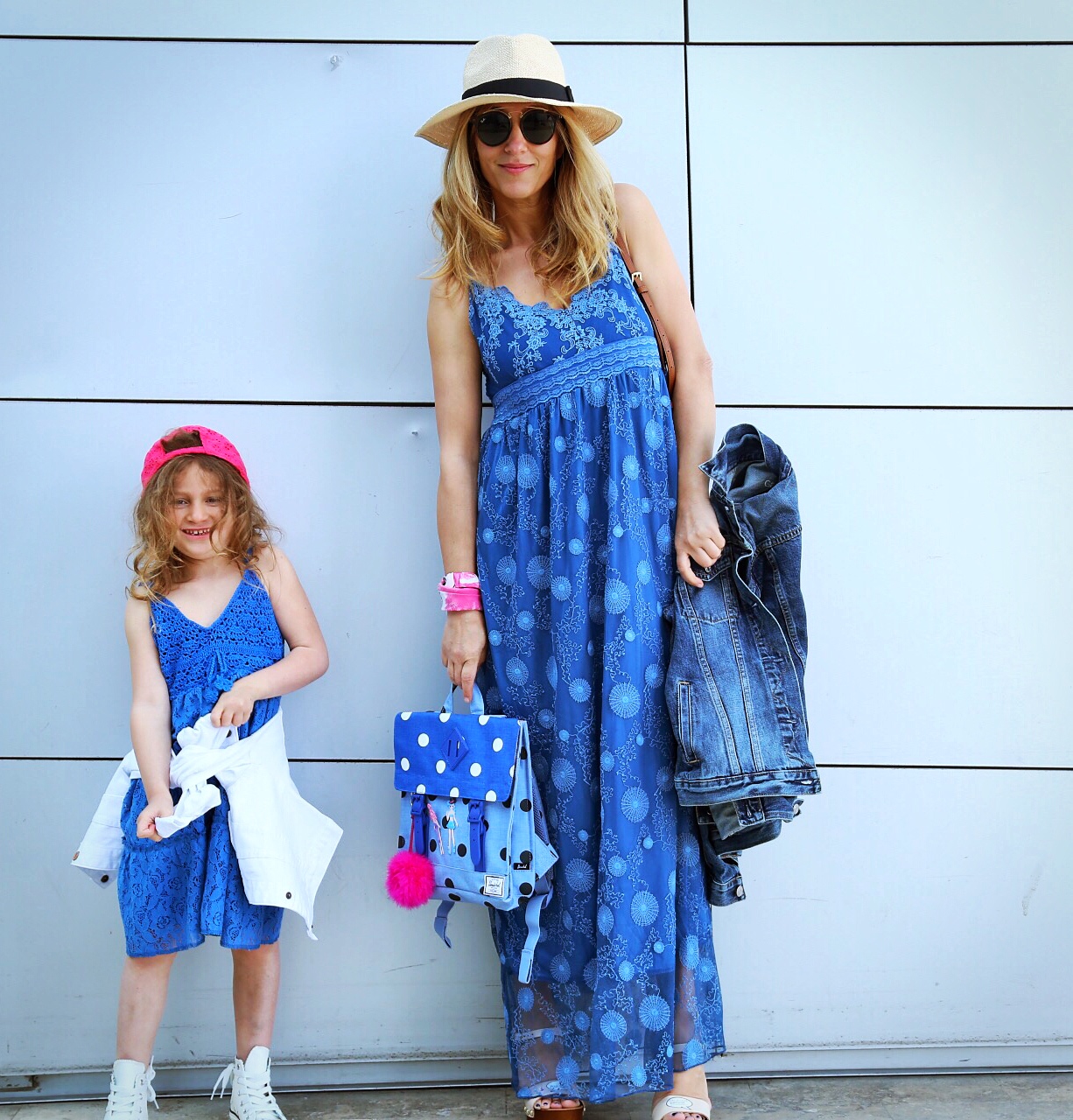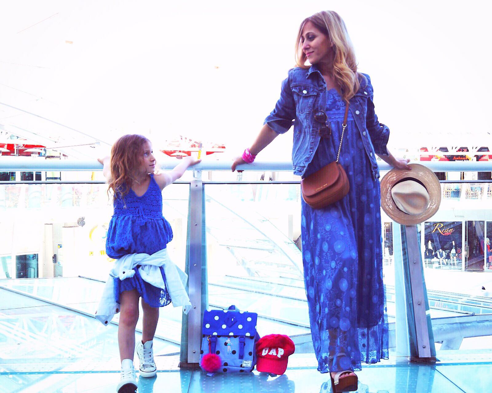 Io ho scelto la versione lunga e lei la versione mini. Difficile resistere alla tentazione di abbinarci una comodissima converse bianca alta della serie chuck taylor all star per lei e per me invece un comodissimo sandalo con il tacco in legno, di un rosa delicato di Maipiùsenza. Infine ci siamo super accessoriate con cappelli, occhiali, una meravigliosa e comoda tracollina di Michael Kors e uno zainetto a pois.