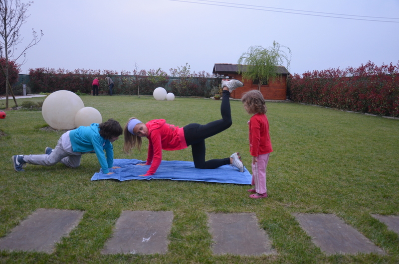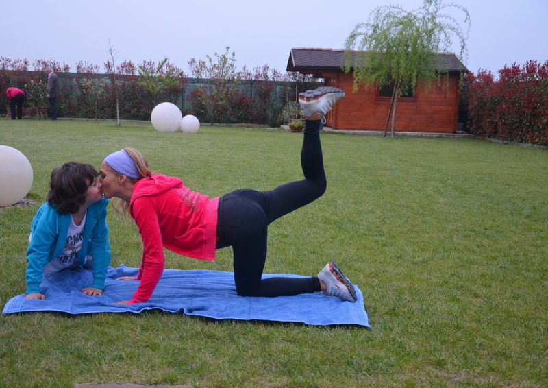 Hai un bellissimo giardino e che belli i tuoi bimbi!! Stai benissimo in tenuta sportiva!
