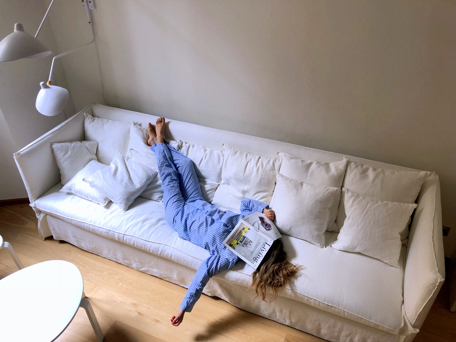 ottimo relax :-)forse dovrei farlo anch’io 🙂 mi piace il divano bianco ma mi sembra che non funzionerebbe a casa mia 😉