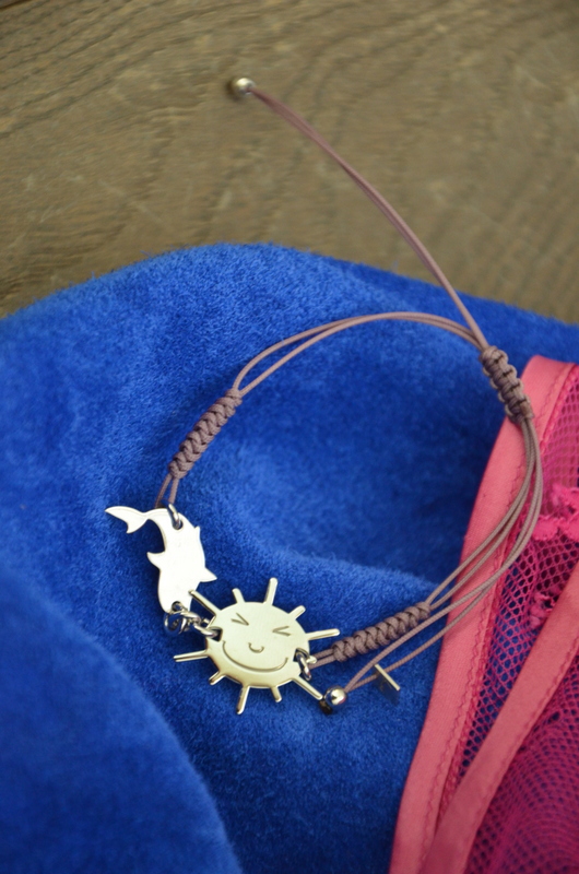 Estate. Voglia di sole e di vacanze. Per me un’avventura marina grazie! Sentire la salsedine del mare sulla pelle, galleggiare e farsi accarezzare dal sole e dai delfini? Un sogno che si trasforma in un bracciale. Un sole e un delfino simbolo dei miei desideri estivi. Quelli che vorresti realizzare magari mentre stai seduta su una scrivania a lavorare. Bracciali divertenti che mettono allegria e buonumore, sole e delfino legati da un corda in tessuto colorato trendy e chic.