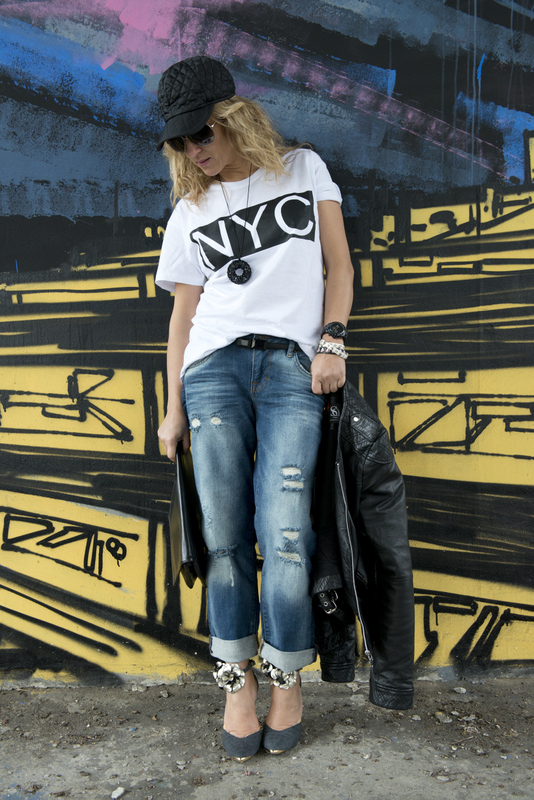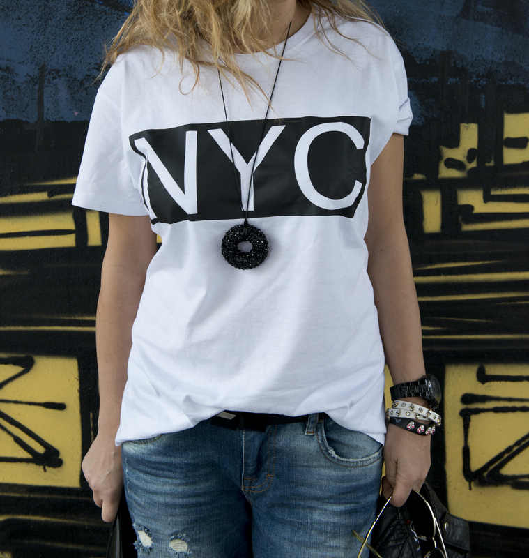 A renderlo perfetto credo il merito vada ad una semplice tee bianca e nera con la scritta NYC (…nella lista di cose da fare prima di morire, mettete: VEDERE NY (H. Duff dal film The Perfect Man 2006)), che adoro e ad un paio di scarpe fuggite dal ballo di Cenerentola.