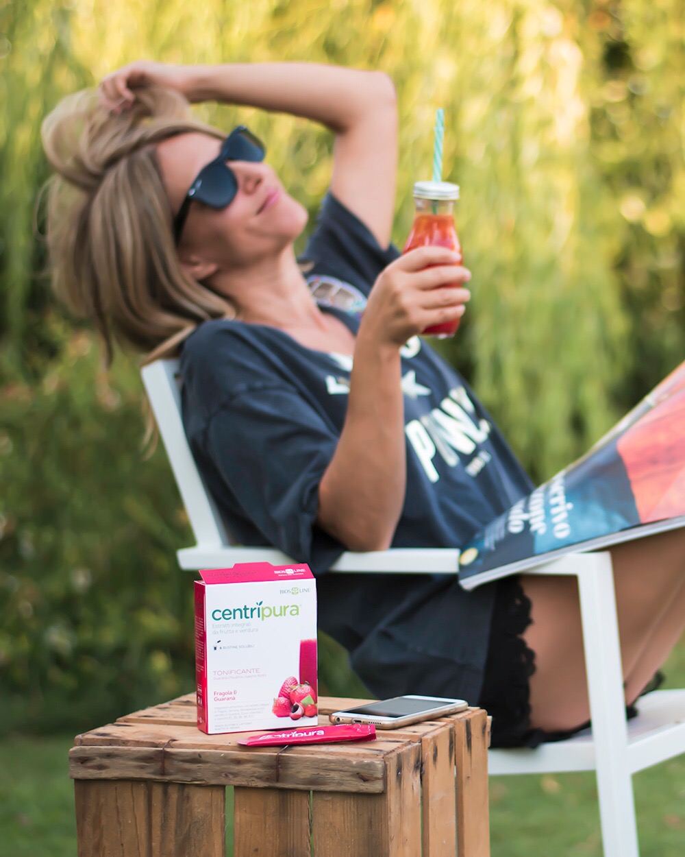 Oggi vi parlo di Fragola, Banana, Barbabietola, Guaranà. Centrifugate il tutto ed otterrete una formula tonificante. Ma per fare prima e godere del vostro tempo, prendete una bustina di Centripura Tonificante da sciogliere in acqua. Indicata in tutti quei momenti in cui senti di averne bisogno perché avverti un calo energetico. Io la prendo al mattino e nel primo pomeriggio perché è ricco di caffeina. Attiva il metabolismo e riduce l’affaticamento.