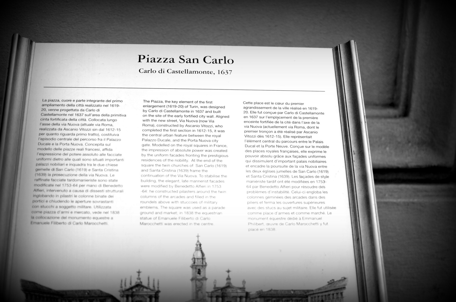 Piazza San Carlo … la più bella piazza di Torino e una delle più belle d’Italia per l’armonia delle sue proporzioni … dei palazzi e la felice scenografia delle due chiese.