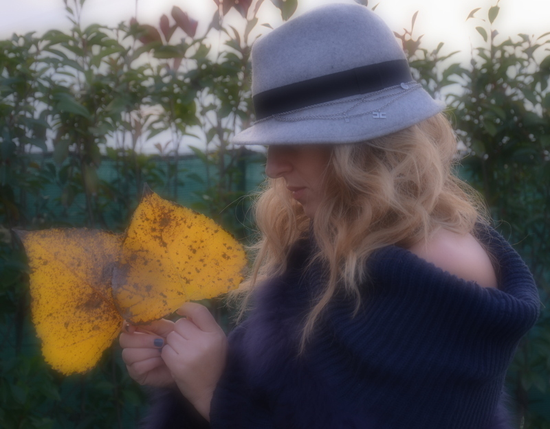 Il cappello modello Borsalino grigio in lana  di Celine Eisabetta Franchi, elegante e malizioso mi raccoglie i capelli liberandomi la pelle del collo e delle spalle, pronta ad accogliere gli ultimi raggi di sole di questa rara giornata..