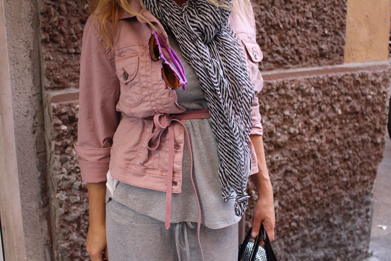 Il mio oroscopo di oggi dice che l’eclissi del 28 aprile sta intensificando la vita dei nati in Maggio con ritmi e impegni che richiedono forza ed energia e che daranno impulso alla nostra produttività. Allora perché non iniziare la giornata con un outfit davvero sportivo? Reinterpretato in chiave urban street questo look è formato da un pantalone pigiama con shirt dello stesso colore quasi a sembrare una tuta sportiva arricchito da un denim rosa, occhiali camouflage e big shopper da global trotter e donna moderna. Una kefiah sul collo arricchisce il look e lo inserisce in quell’atmosfera metropolitana. L’attenzione cade anche sulle scarpe che in questo look sono una componente importante poiché la donna sportiva diventa chic con un pizzico di sensualità. Un outfit originale non scontato realizzato per Galluccinumero con la collaborazione stilistica di Cinzia Vignudini la titolare, un piccolo store nel centro di Modena che mixa nel modo giusto tanti stili per ognuna di voi.