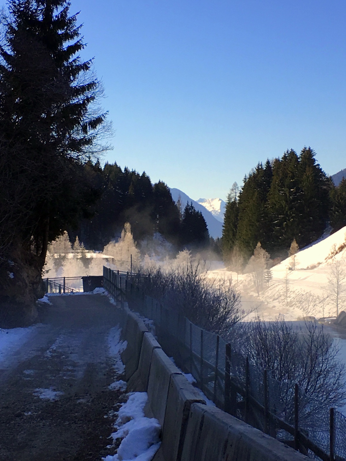 Tutte le destinazioni sono facilmente raggiungibili con un po’ di pazienza e voglia di mettersi in movimento. Oggi per esempio dopo aver sciato sono scesa a valle per andare a piedi a Soraga percorrendo i sentieri interni battuti in mezzo al bosco, sempre in solitaria. Mezzora di camminata circa 3 kilometri. Uno di questi giorni incontrerò un alieno.