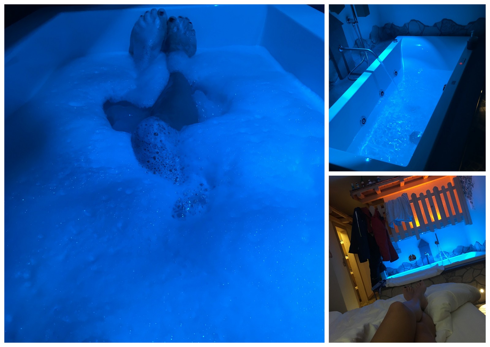 Sauna e bagno turco nel mini centro benessere dell’hotel family La Grotta. Spa, sauna, bagno turco, relax e acqua aromatizzata agli agrumi e frutta. Idro in camera con tanta la schiuma. Massaggi e benessere e infine deliziose cene con la mia famiglia e con i miei look glitterati.