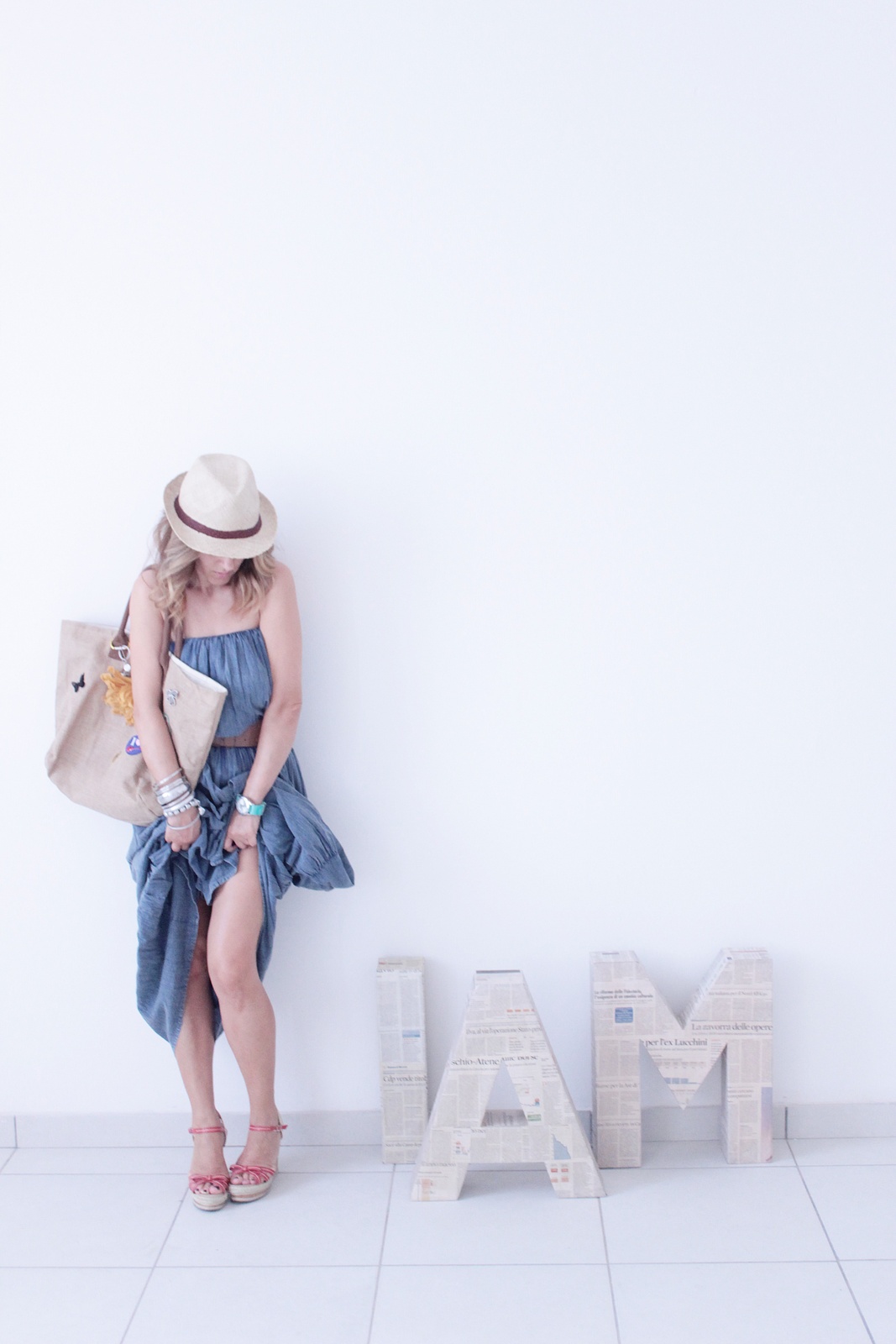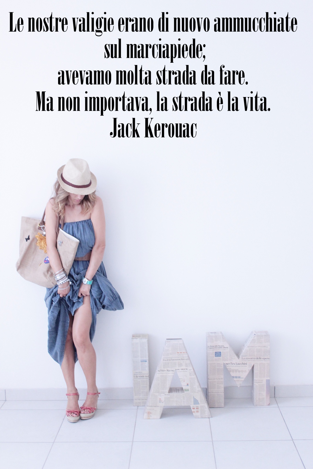 Elogio della meraviglia di un viaggio tra materiali particolari: juta, paglia, lino e cotone che sembra denim rivisitato in chiave lieve, elegante e che non ha bisogno di essere stirato.