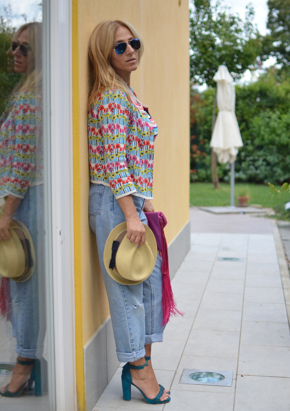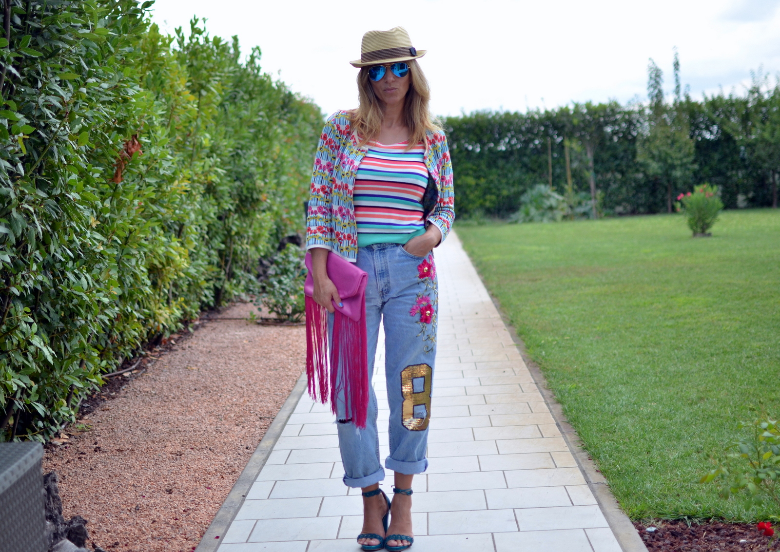 Bellissimo questo outfit, mi piace tutto!! Il top a righe è bellissimo e l’abbinamento con la giacchina floreale è geniale, solo tu potevi farla per un risultato fighissimoooo!!!