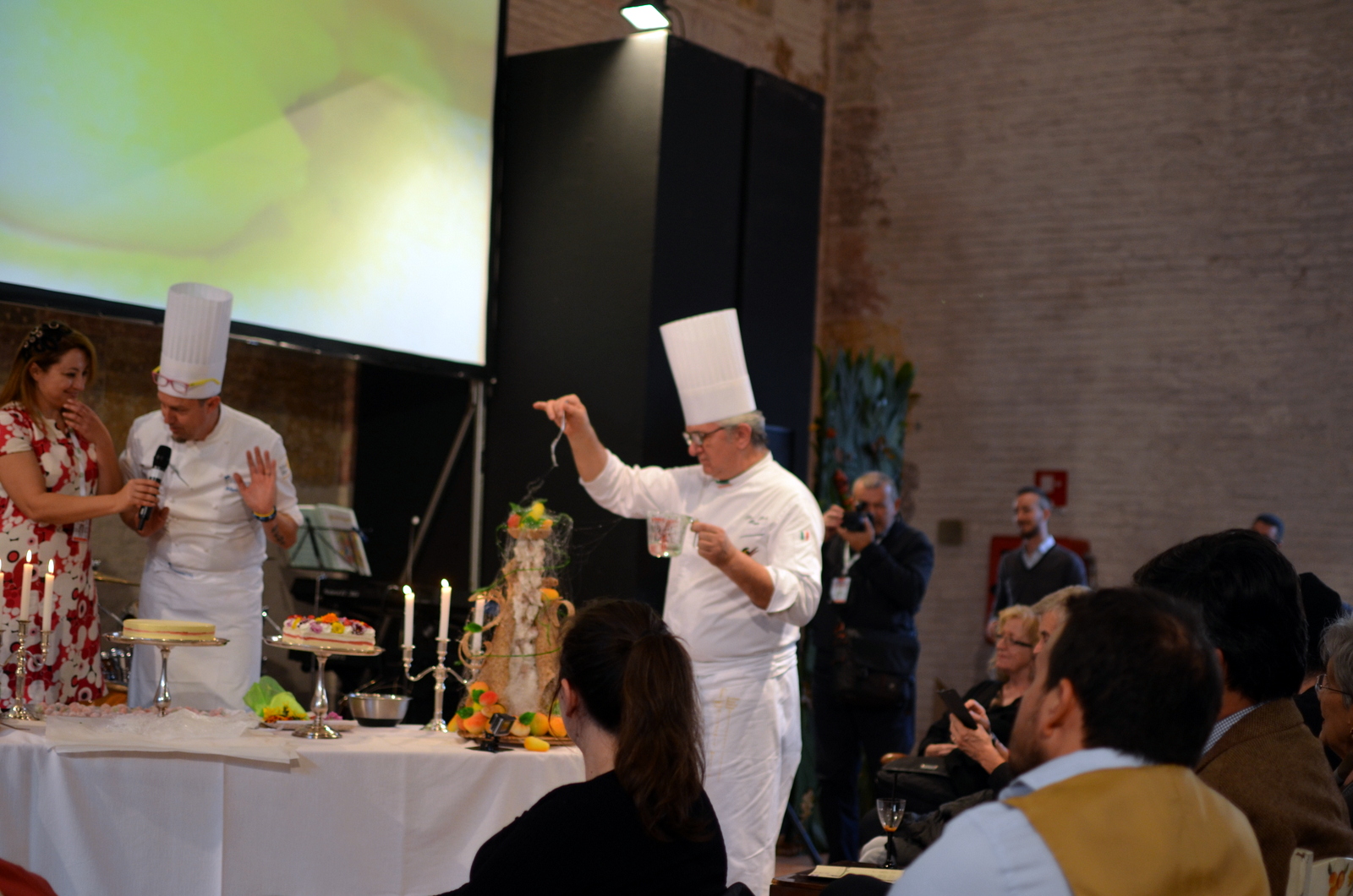 Infine dai grandi banchetti nobiliari del XXI, secolo siamo andati alla scoperta della nascita di una delle eccellenze italiane: il gelato. A cura di Luciana Polliotti, curatrice del Gelato Museum Carpigiani, le famose macchine del gelato, e con i maestri gelatieri, nonché campioni del mondo di gelateria, il Maestro Pierpaolo Magni e il Maestro Filippo Novelli, abbiamo rivissuto e gustato una squisita esperienza sensoriale. Dal gelato gastronomico al dessert attraverso una riproduzione originale della Torta della Duchessa e della Torta di Alhambra. Tutto favolosamente delizioso.