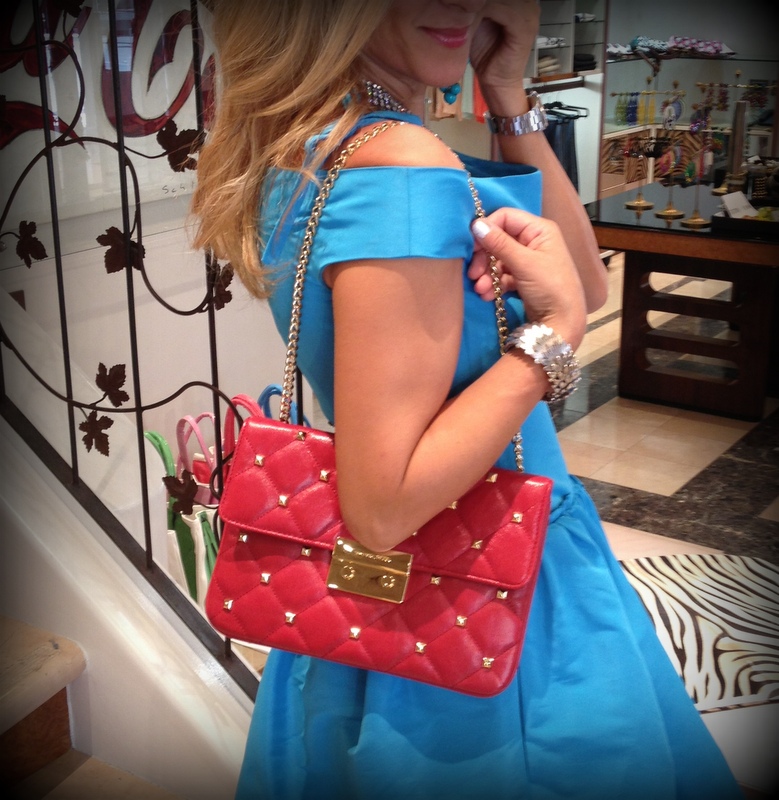 Bellissimo il vestito, e anche quel colletto super glamourous; la borsa mi piace meno, ma solo perché non amo il rosso.